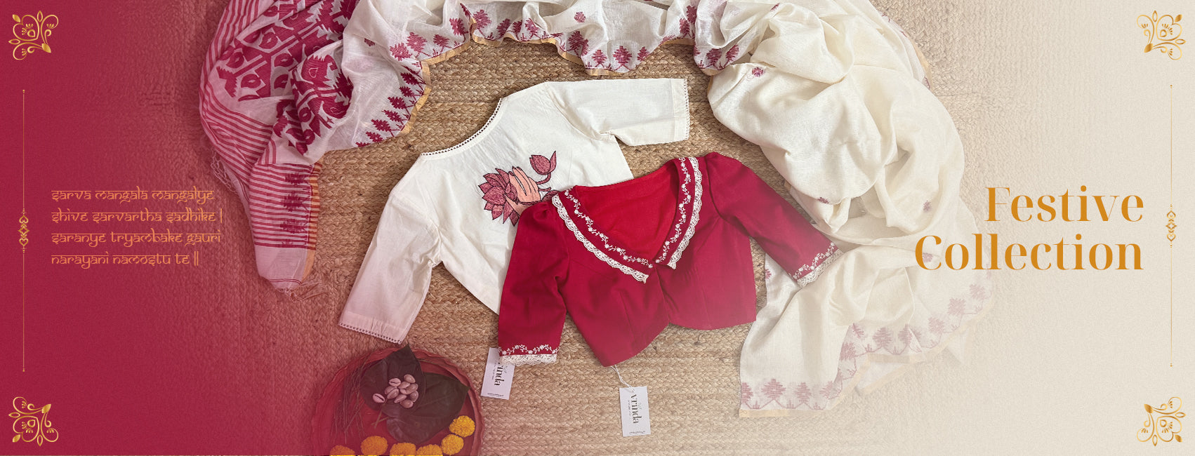 At Vrinda Clothing Studio we create designs where 'contemporary meets elegance'. Our products are sustainable and made in India with premium materials sourced locally.