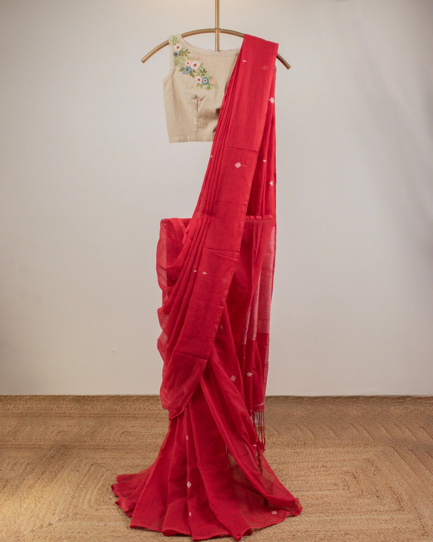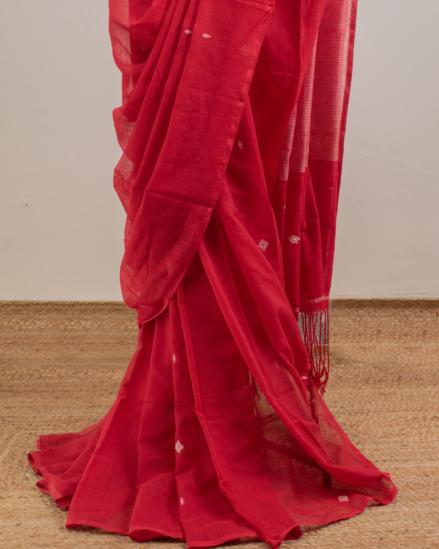 This charming Jamdani Cotton Saree feels light and breezy—ideal for bringing a dash of excitement to your festive events and parties.