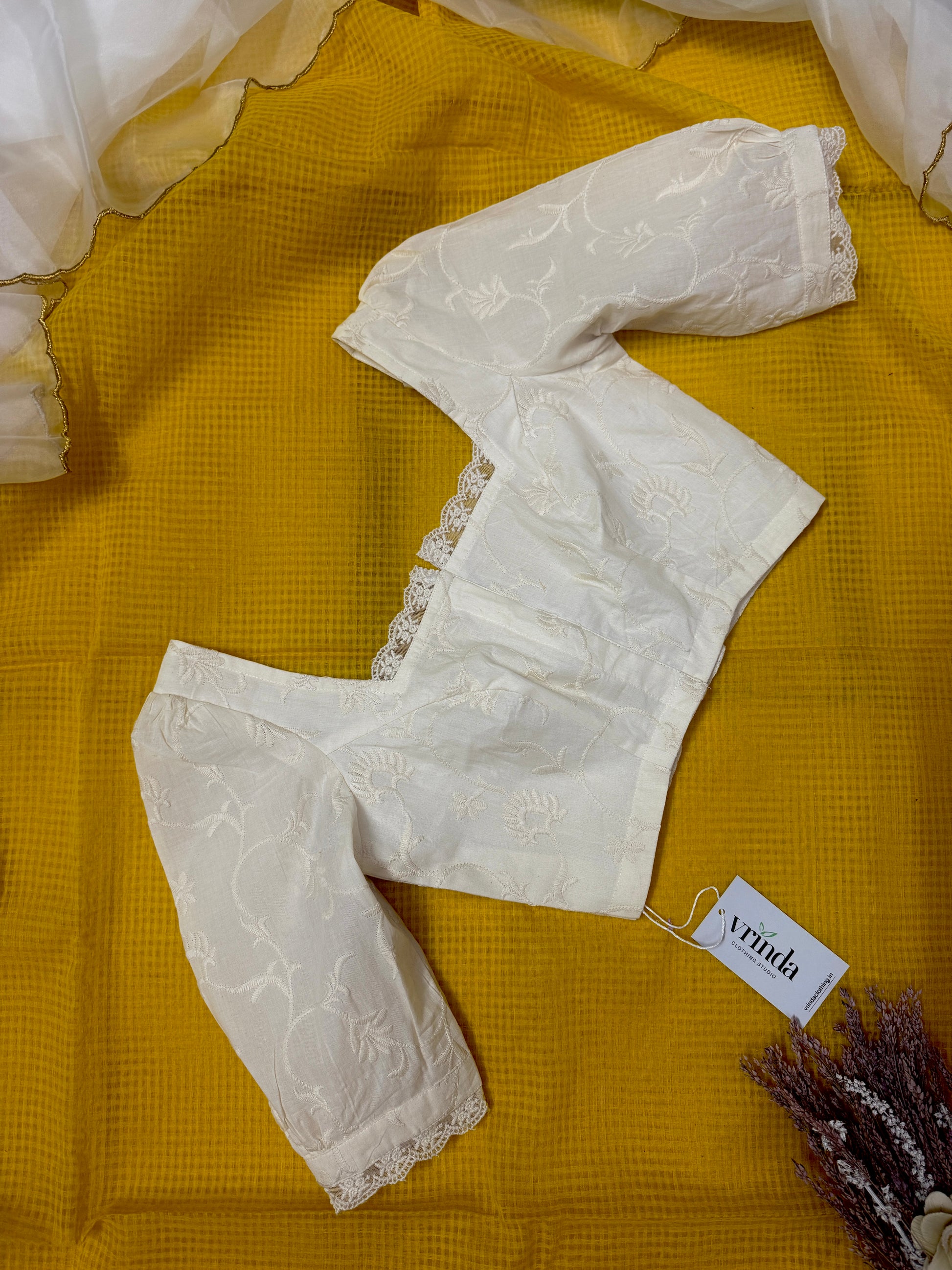 This is a timeless classic everyday comfort blouse; also popular as self embroidered blouse.