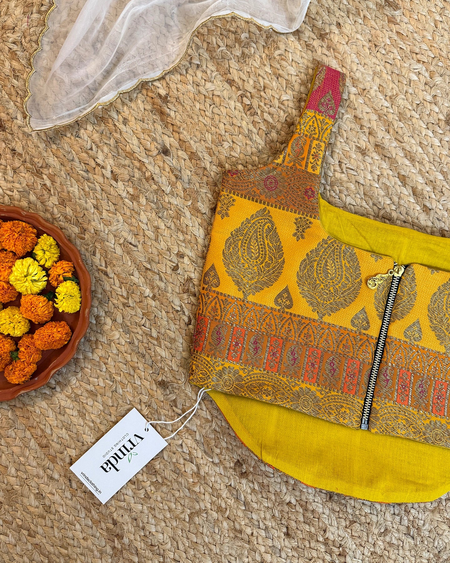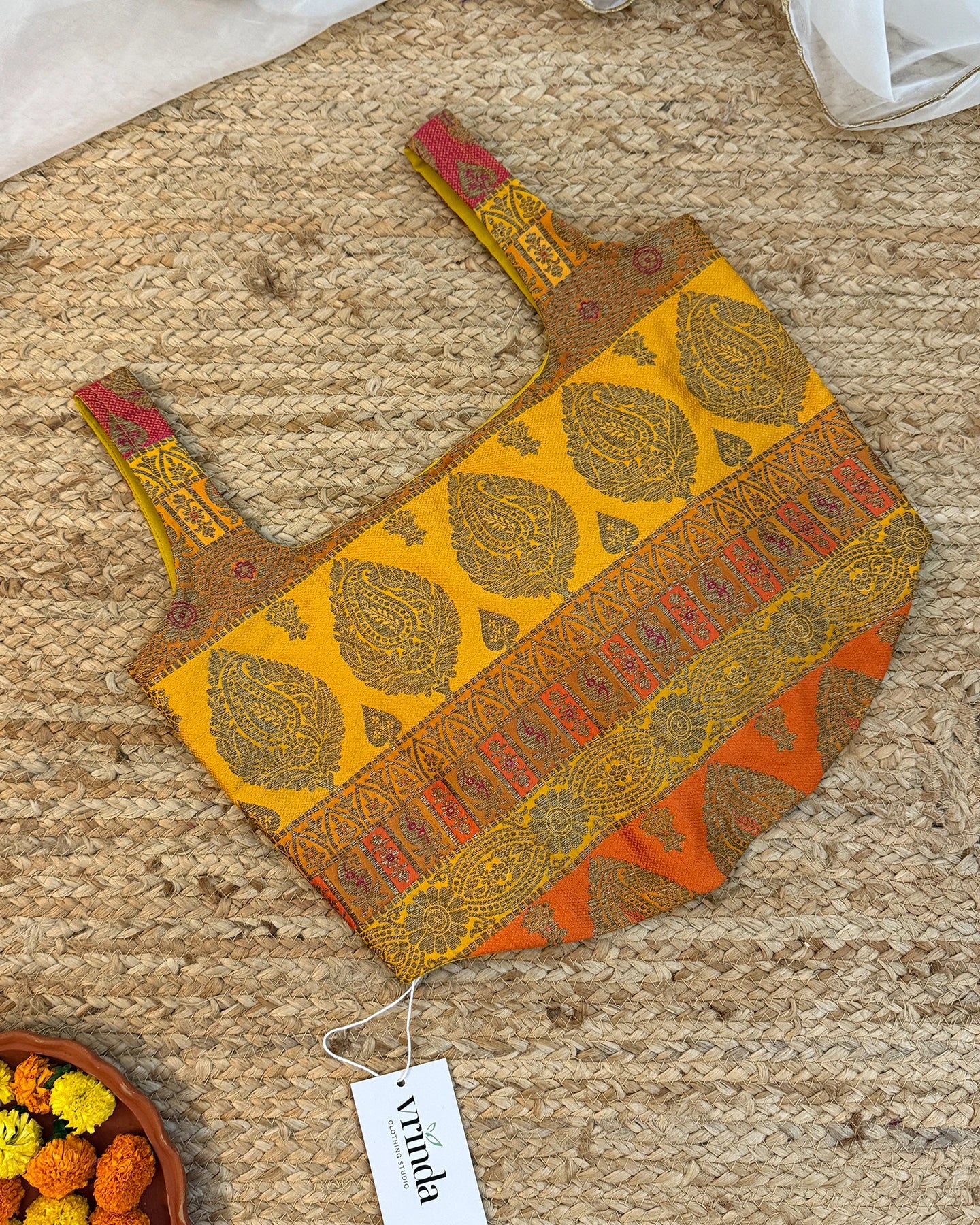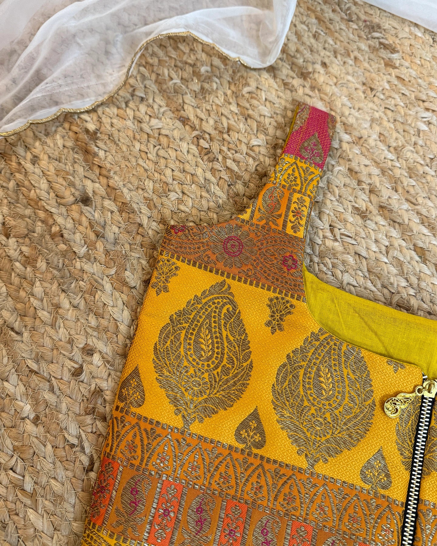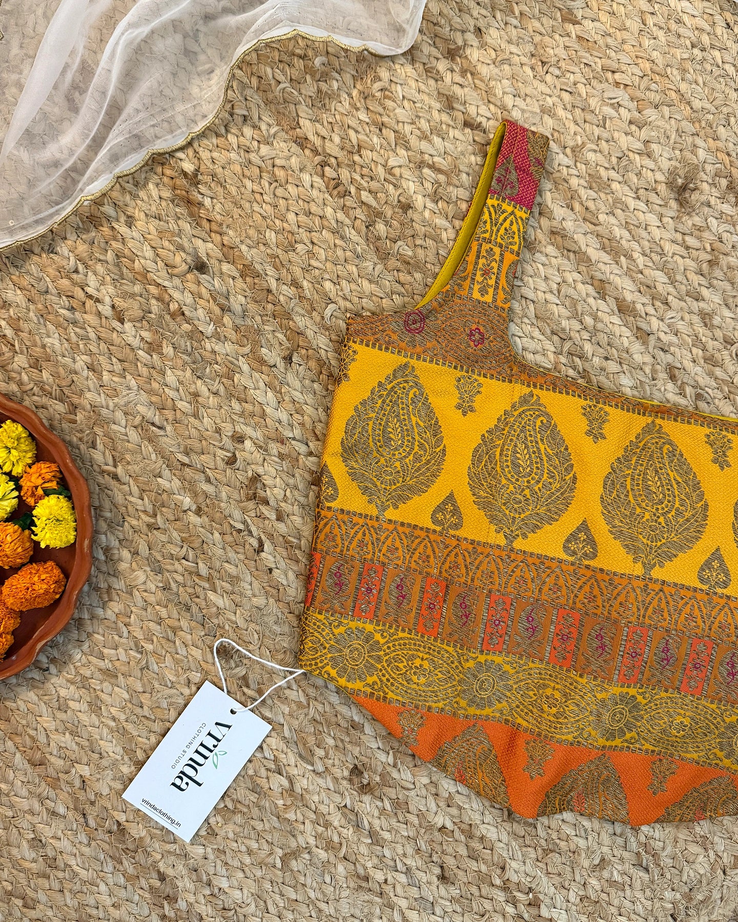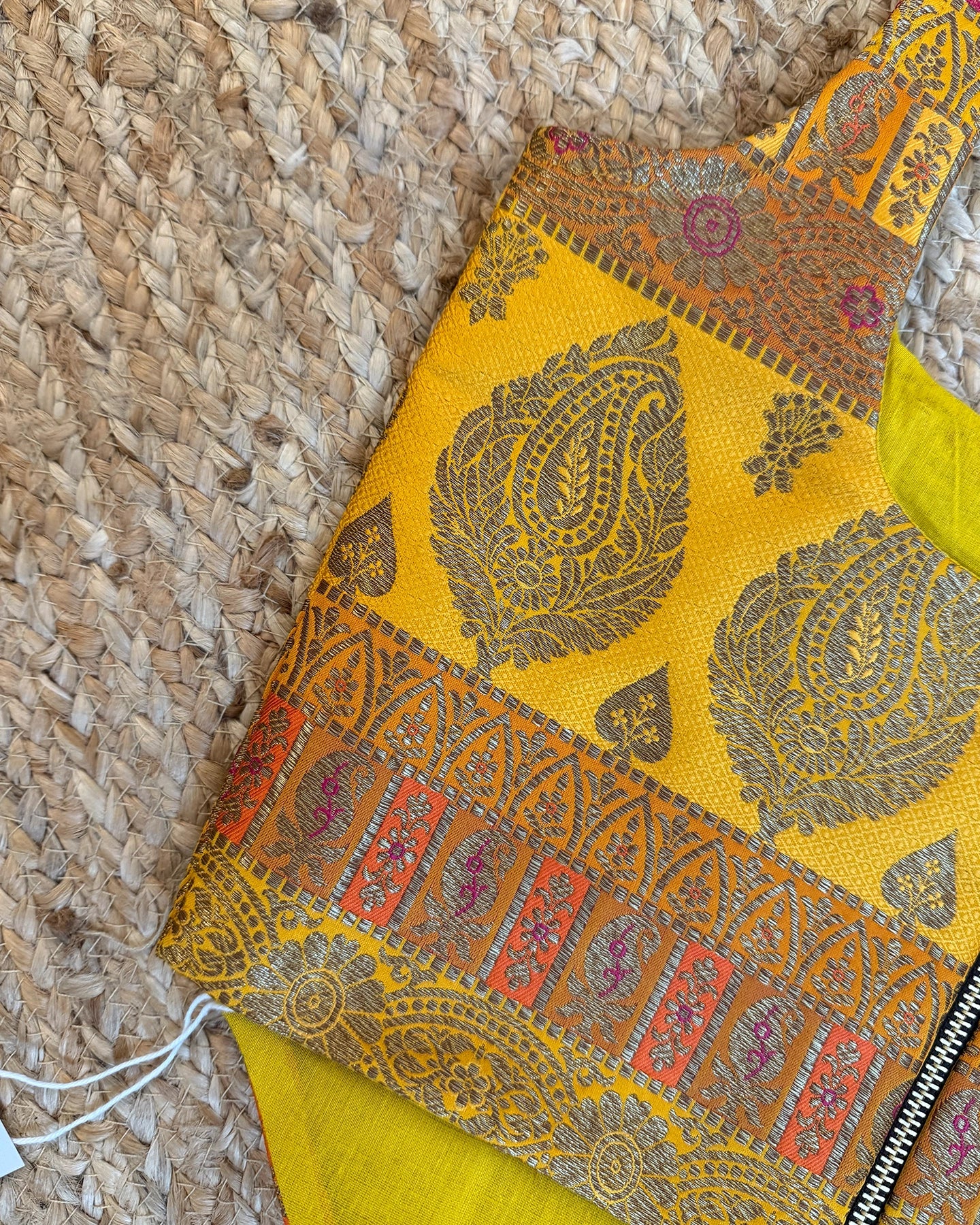 Made from Pure Varanasi silk , with pure cotton lining all over, this designer blouse emanates royalty. Date nights, special occasions or parties this saree corset a must have for your wardrobe.