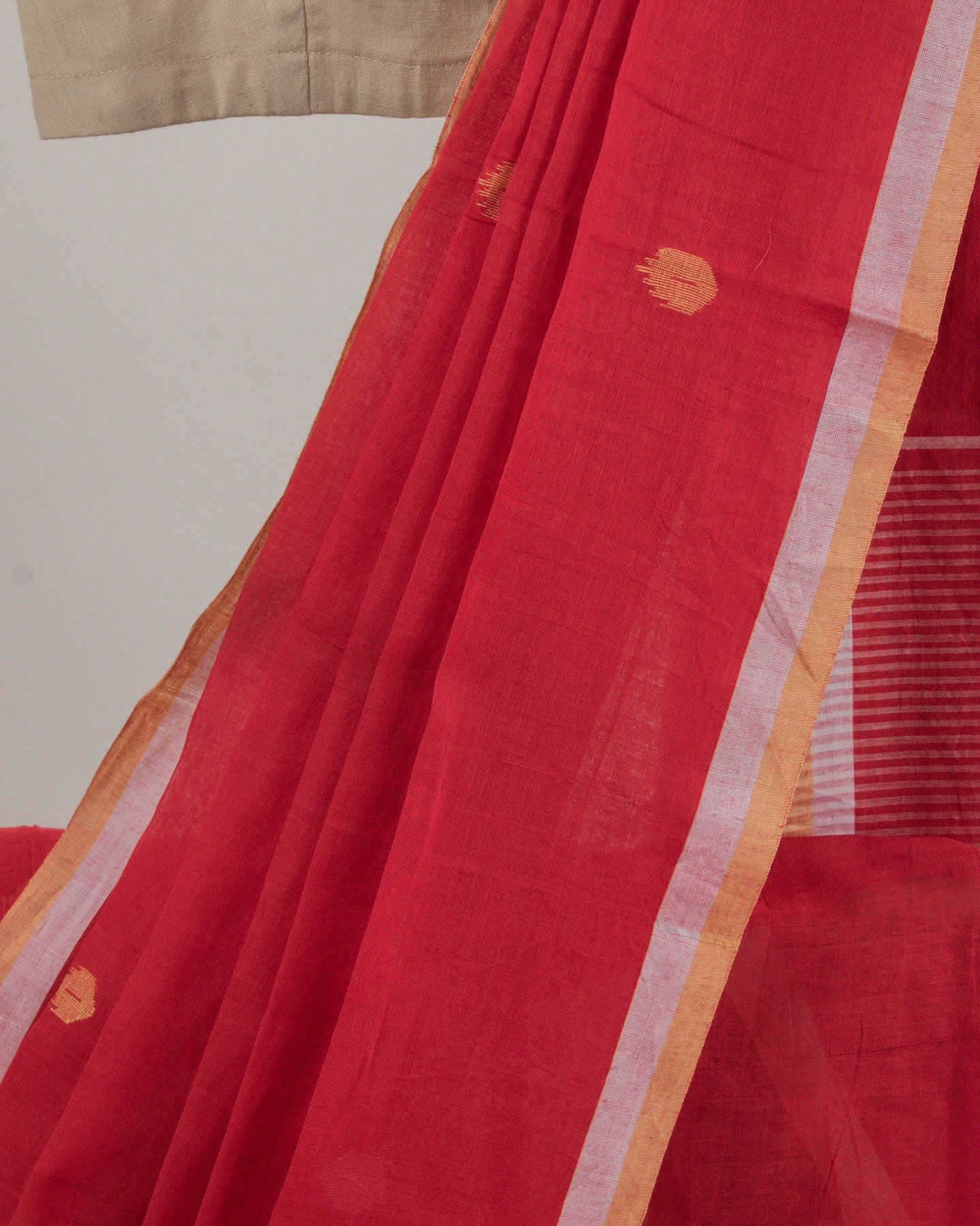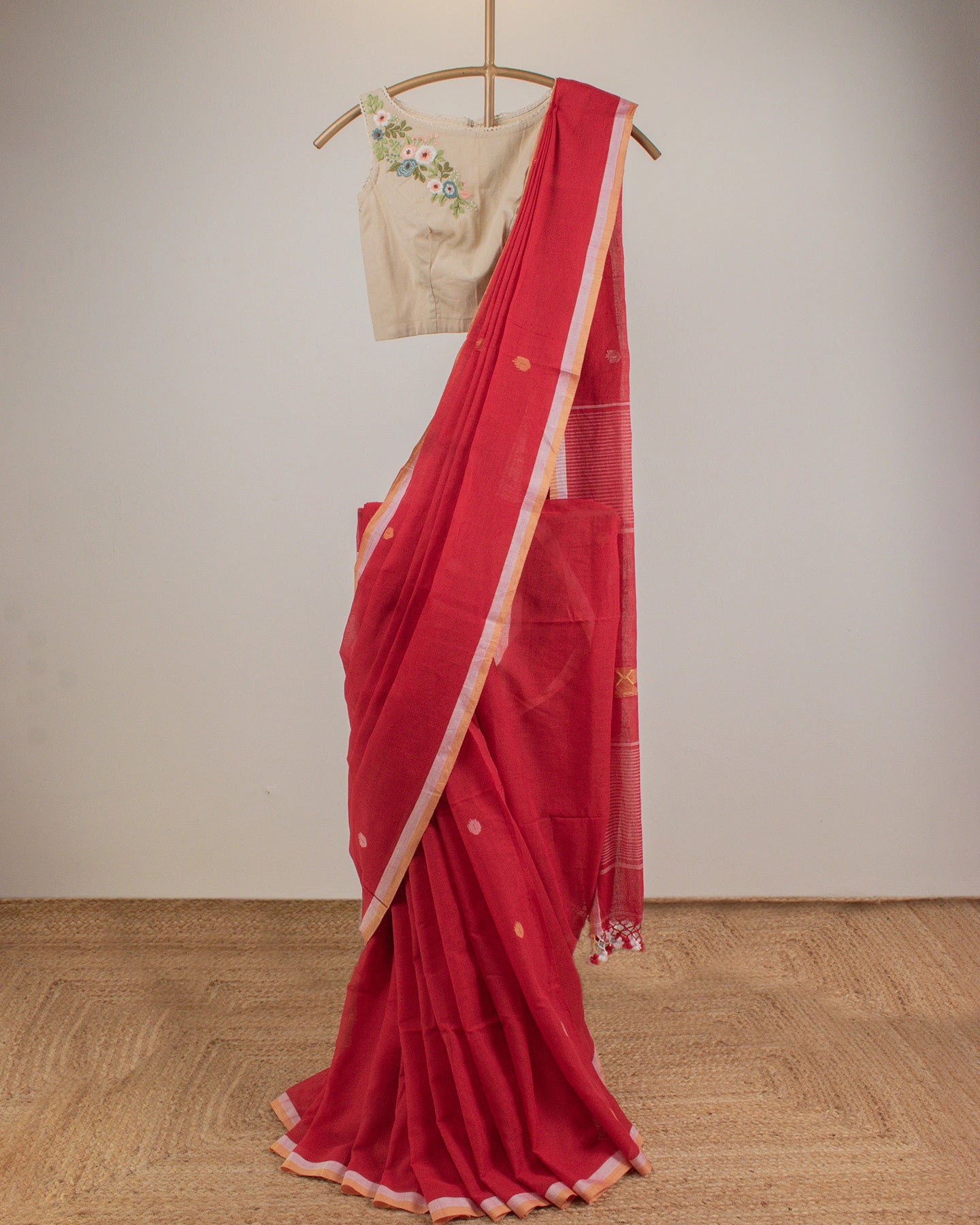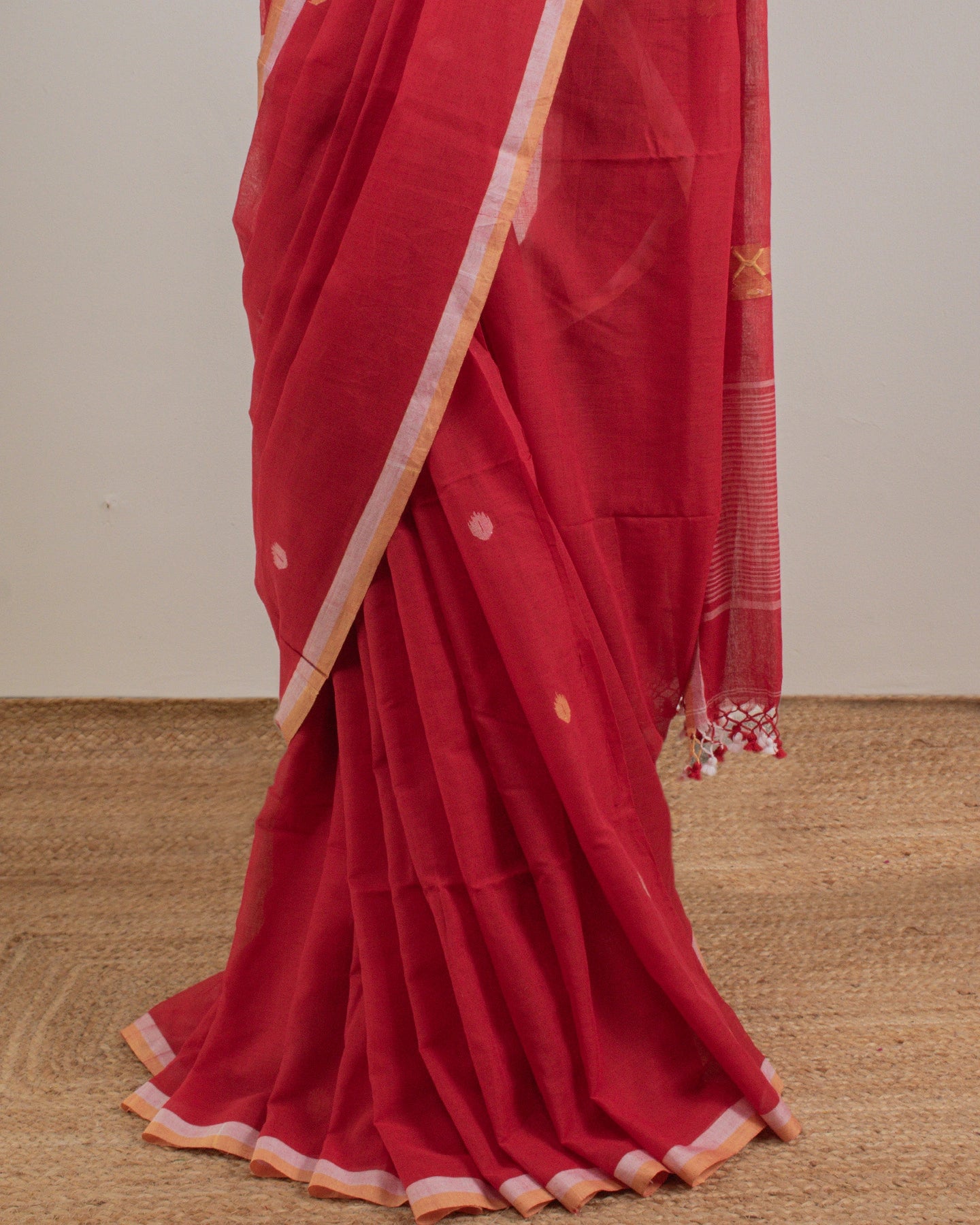 This charming Jamdani Cotton Saree feels light and breezy—ideal for bringing a dash of excitement to your festive events and parties.