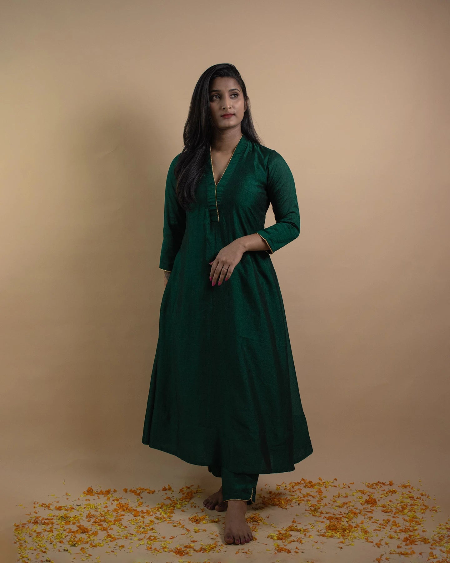 Please note that customized outfit orders are not eligible for exchanges are returns as they are made according to your measures and requests. In case of any errors in design or measurements, please email us: vrindadcouture@gmail.com