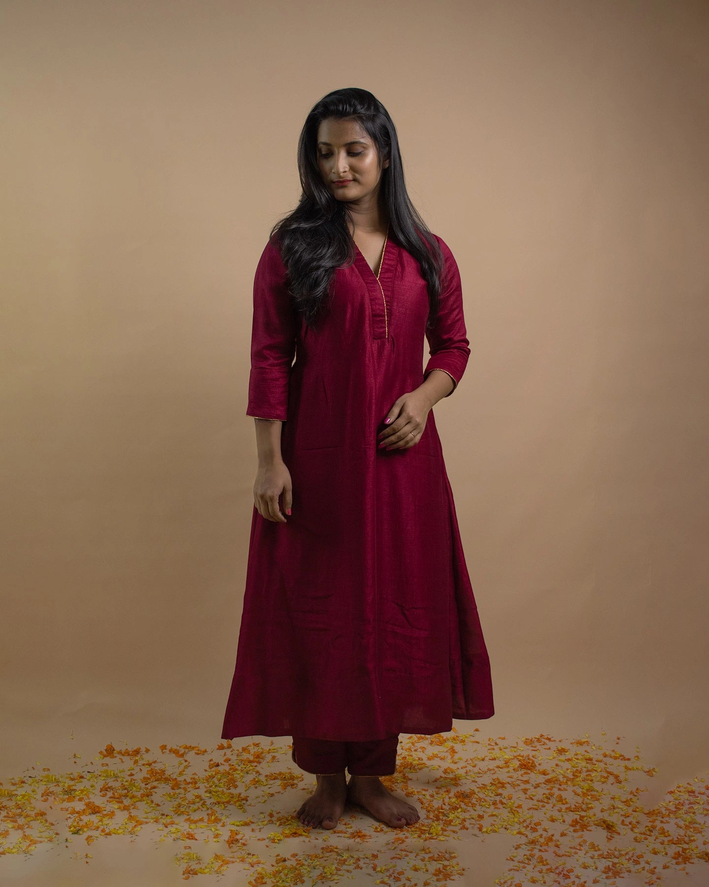 This versatile outfit is ideal for casual wear, daily errands, or light festive occasions.
