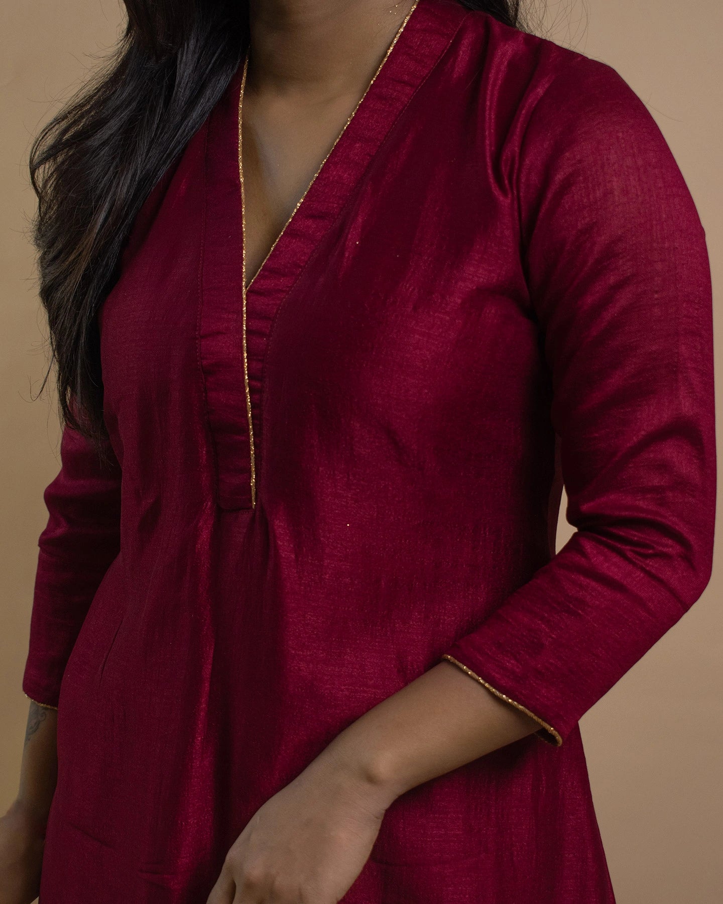 Fabric: Blended silk , with Pure Cotton Lining Inside for both top and bottom
