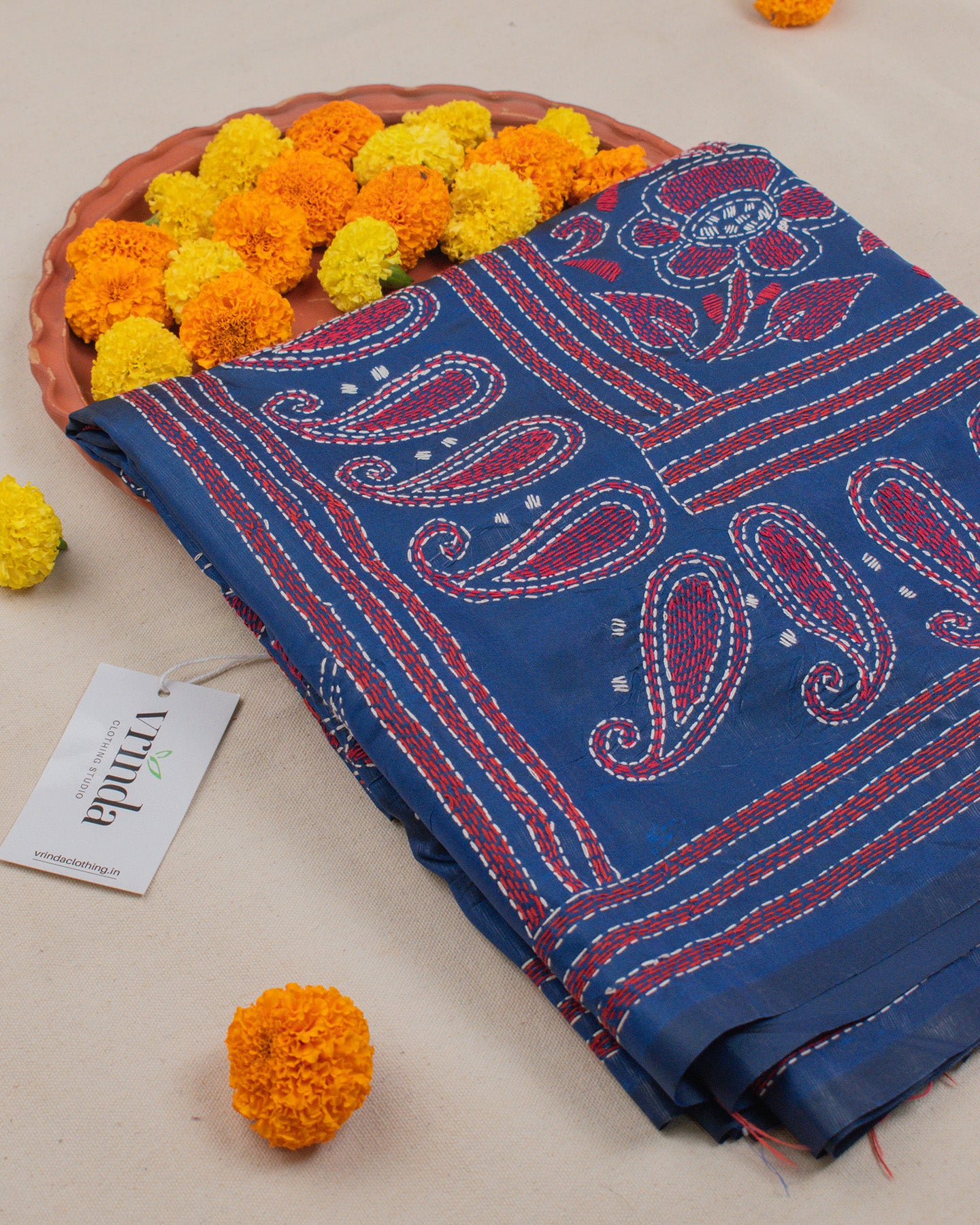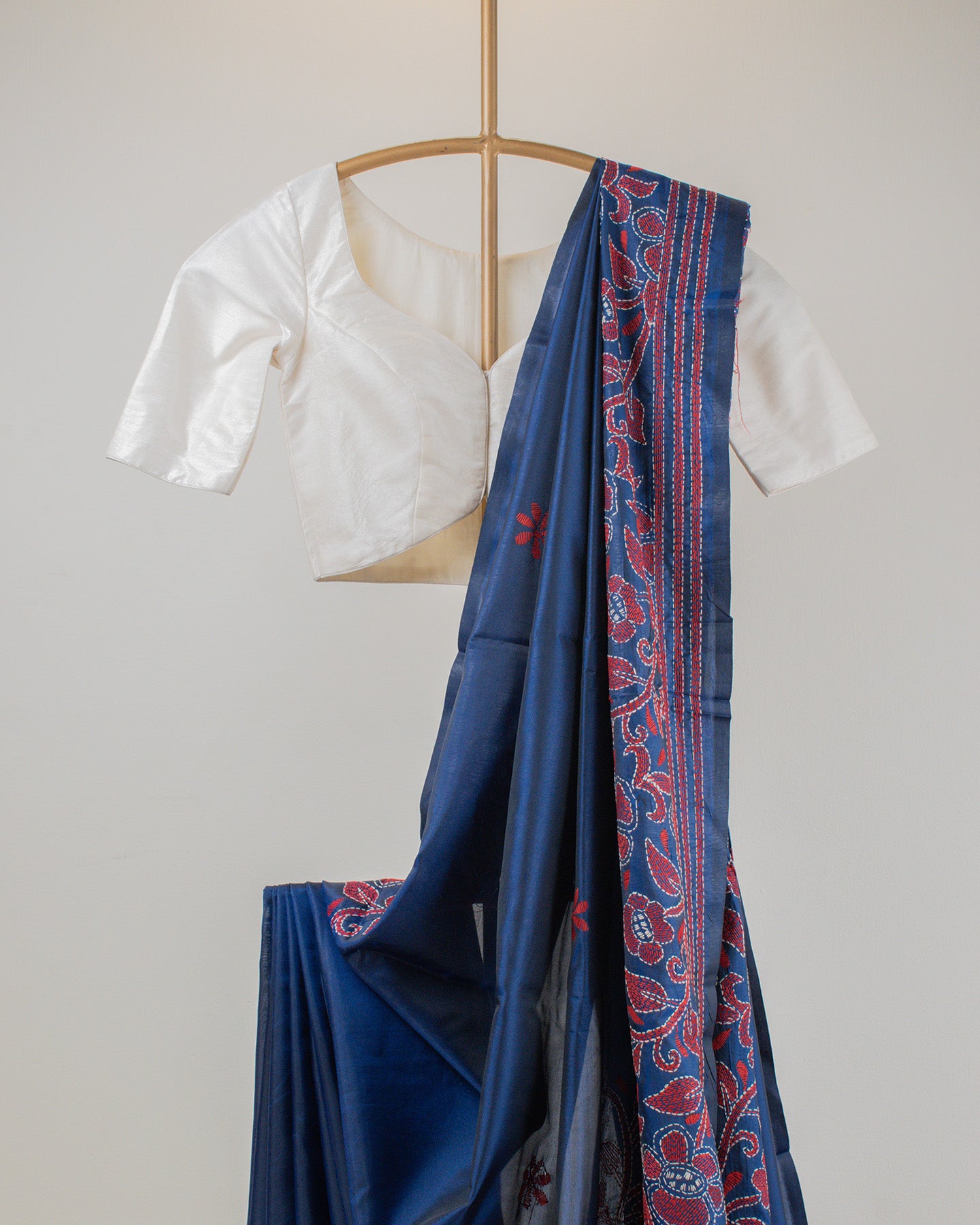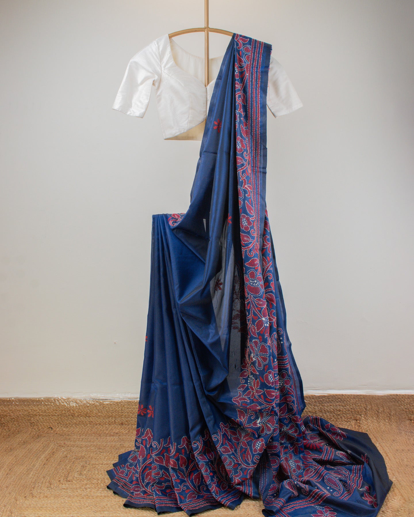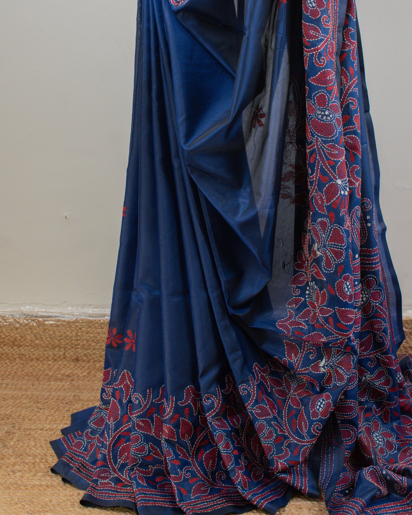 Kantha Floral Blue Saree