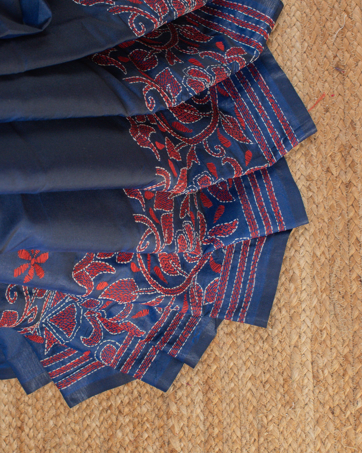 Fabric: Art Silk Base, Complete Kantha Hand Embroidery