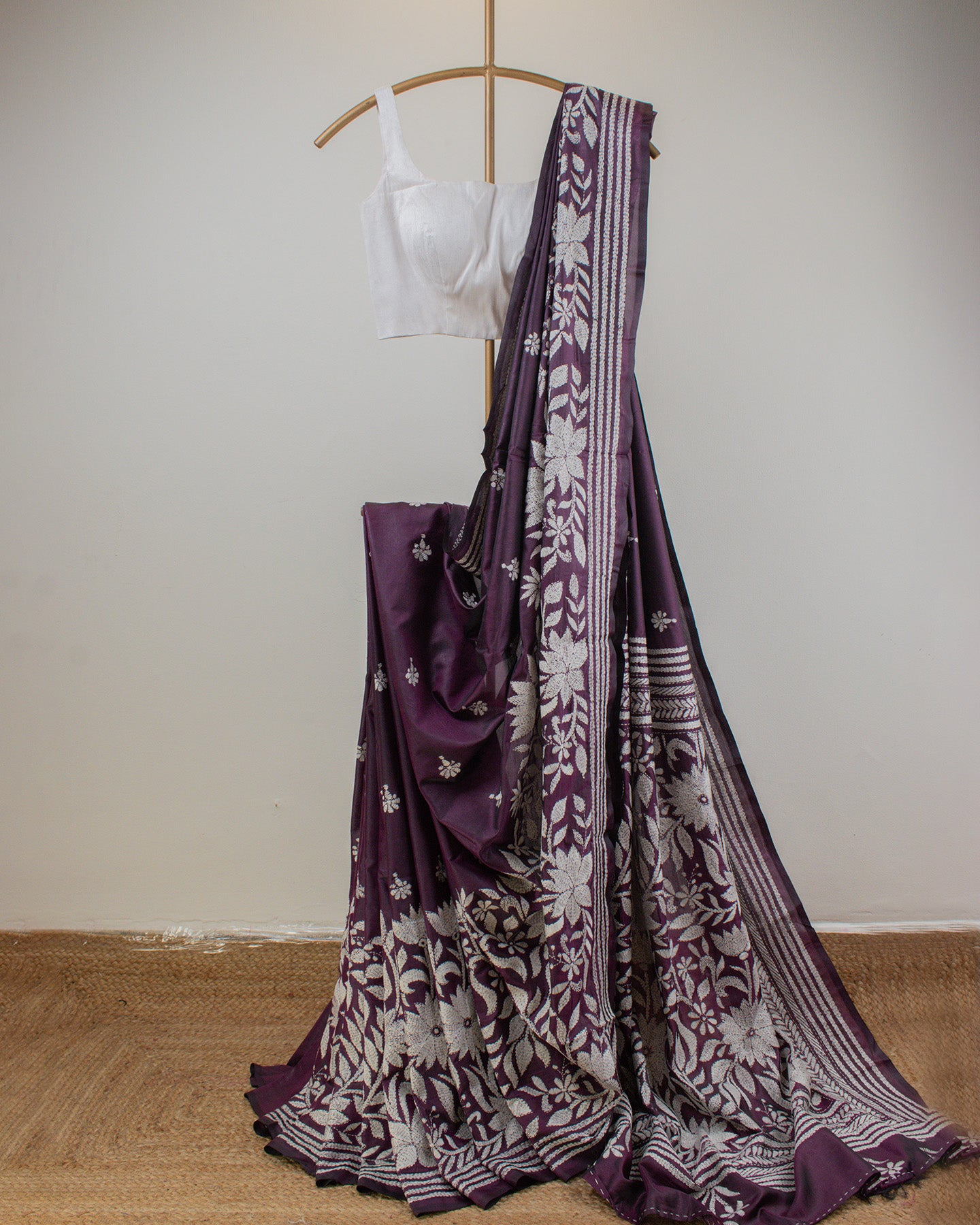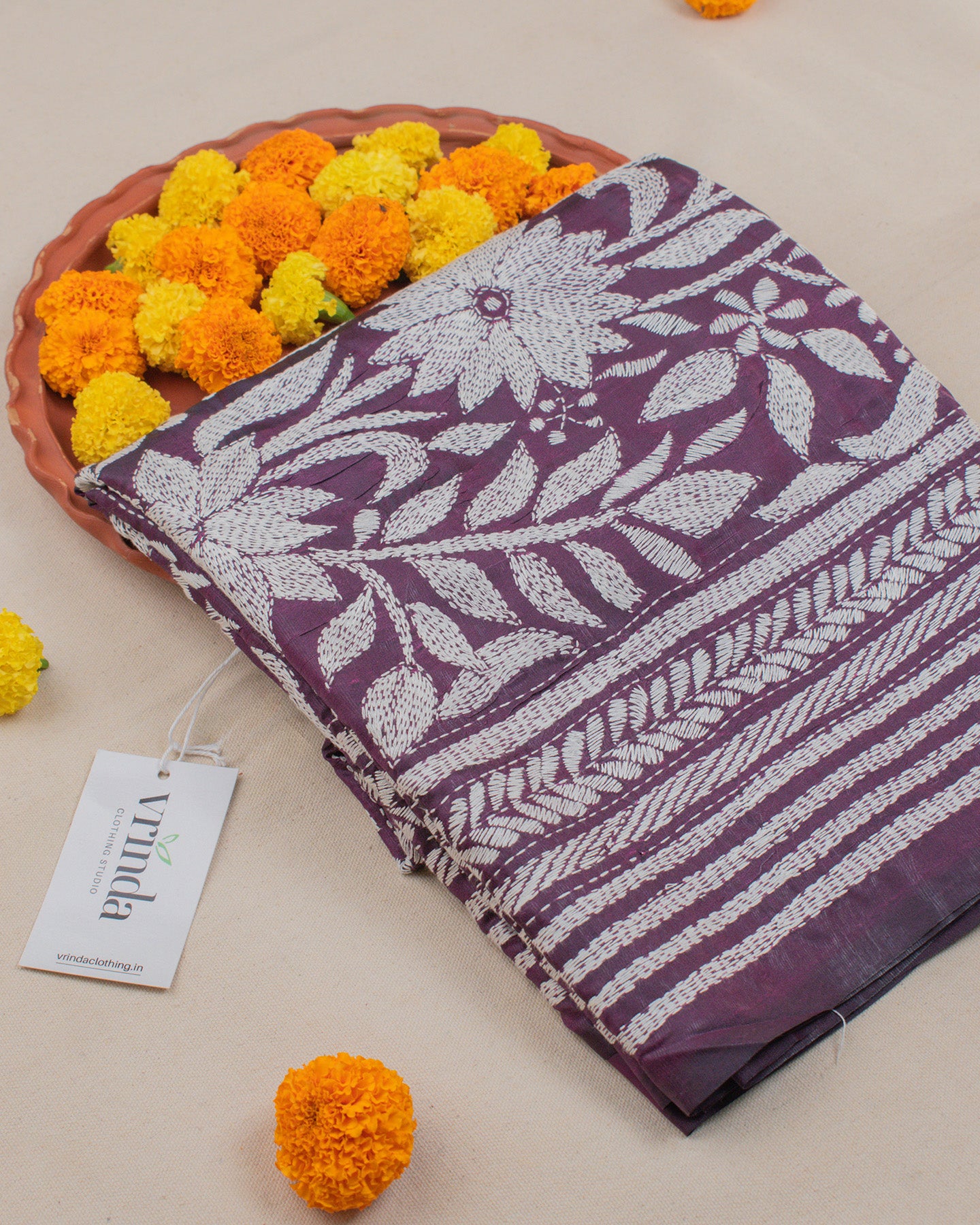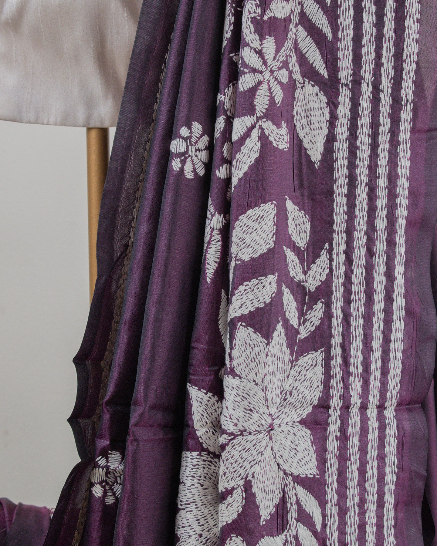 Made with care just for you, this saree mixes classic style with all-day comfort. Covered in delicate kantha hand embroidery, it’s a handwoven treasure you’ll adore wearing. Whether it’s a special event or a casual day out, this saree helps you shine bright and stand apart.