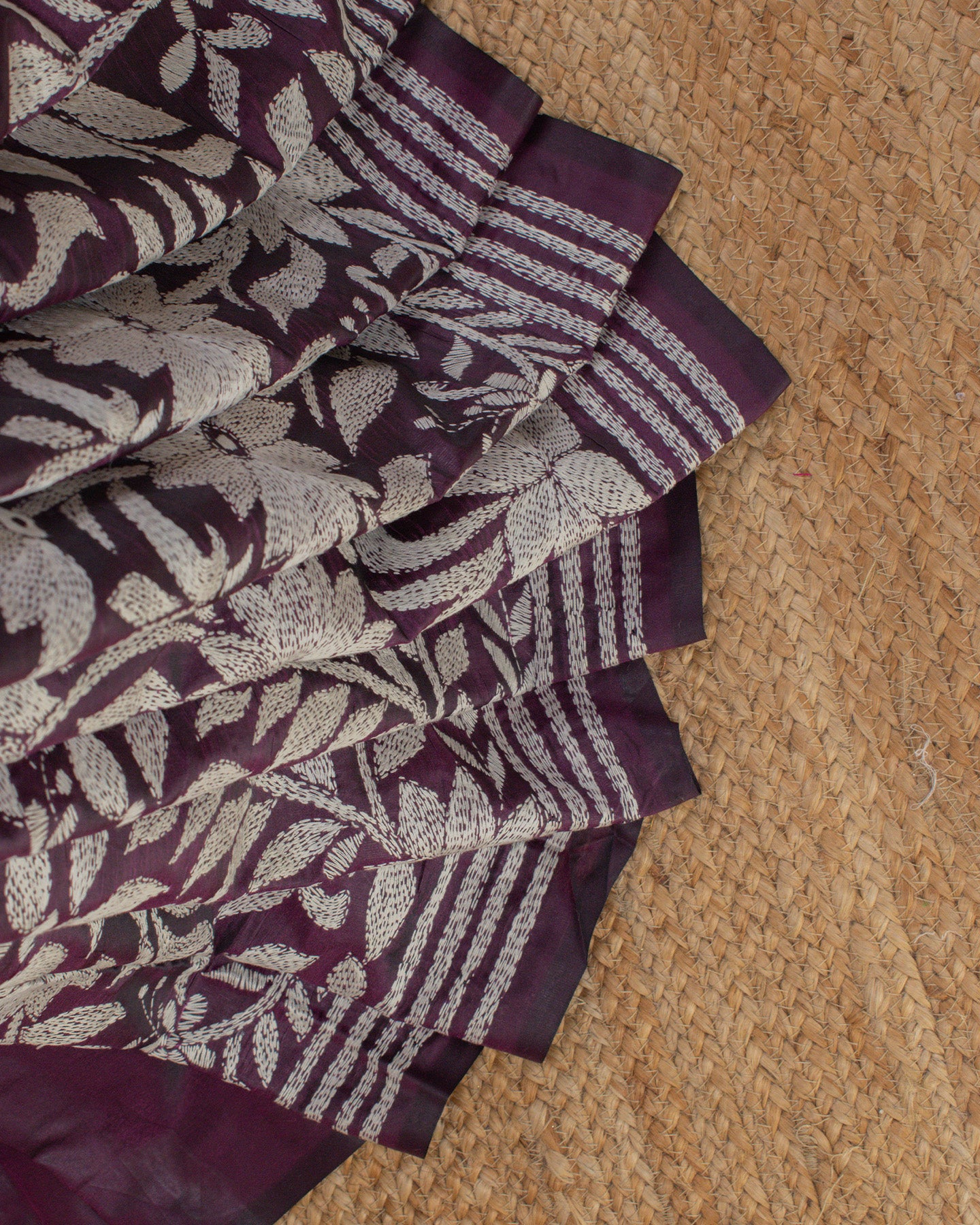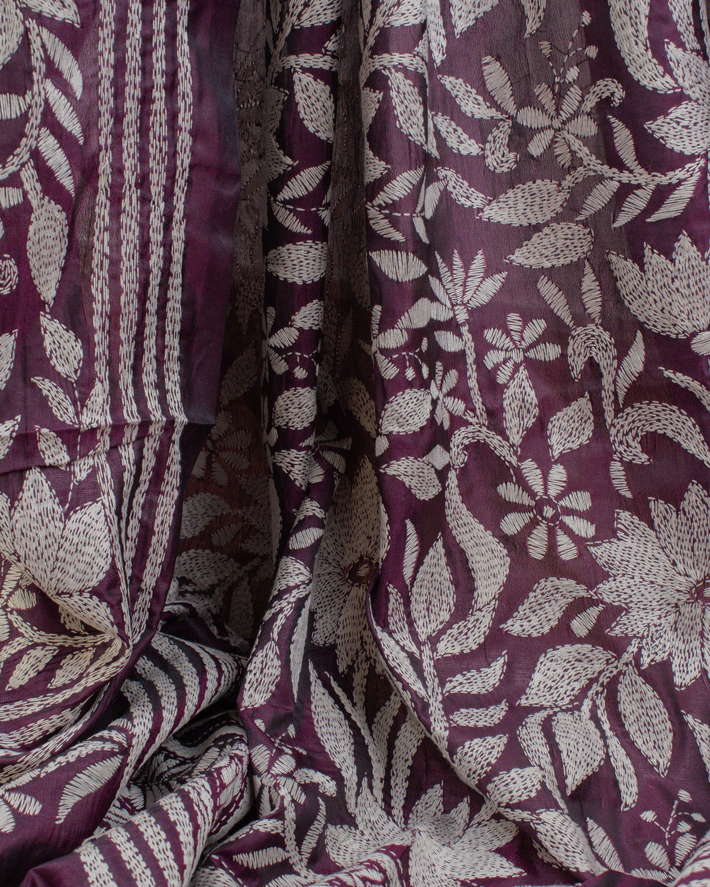 Fabric: Art Silk Base, Complete Kantha Hand Embroidery
