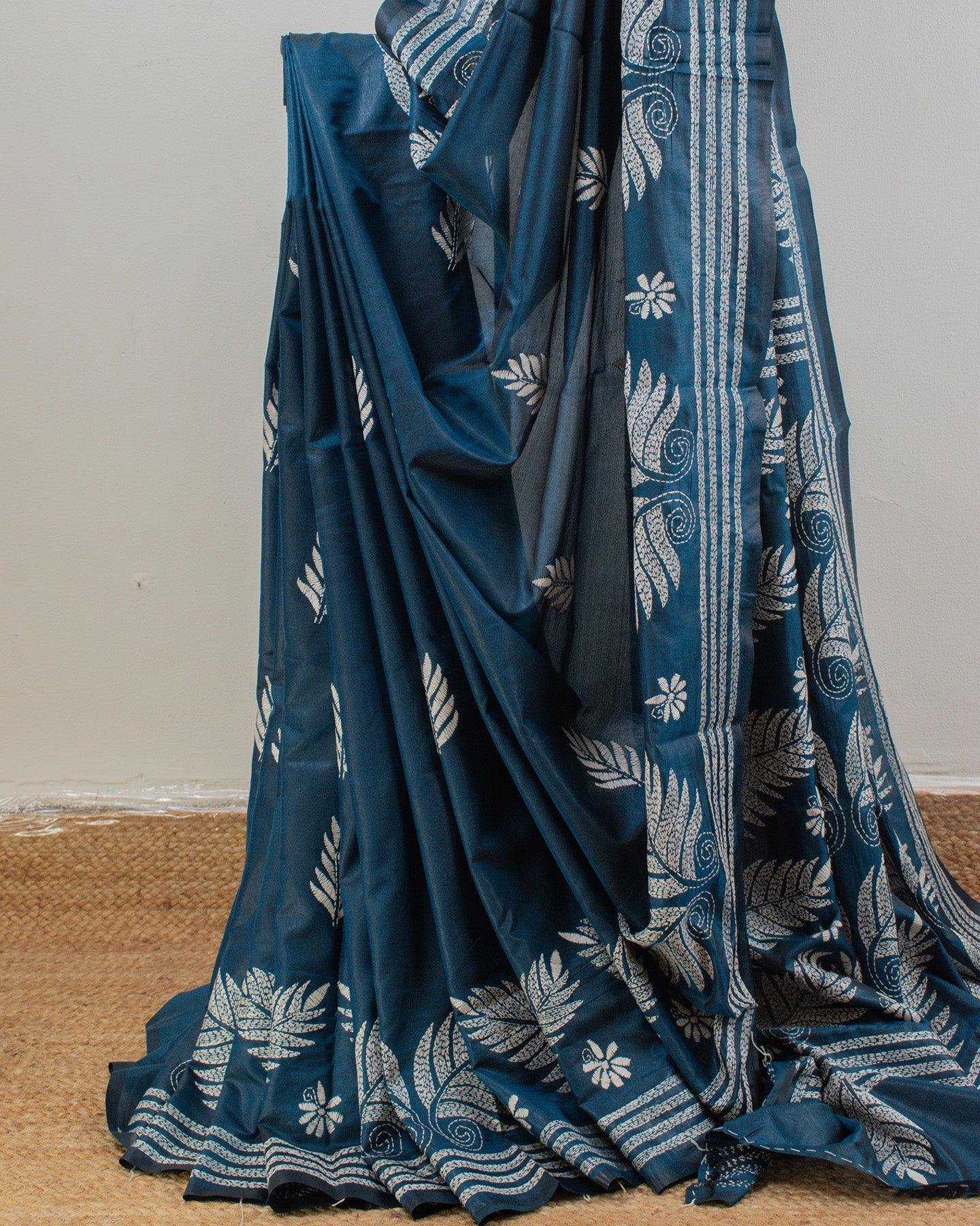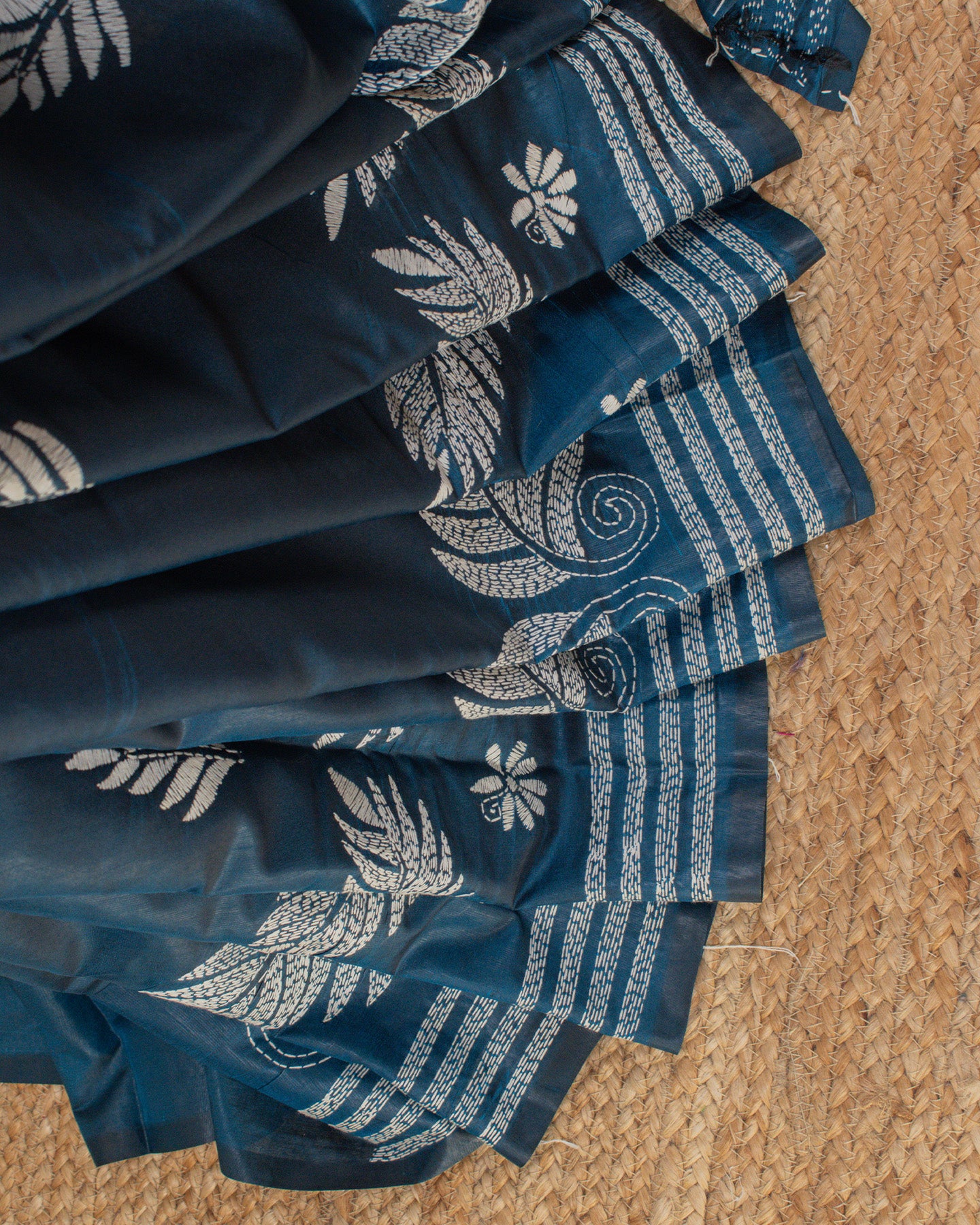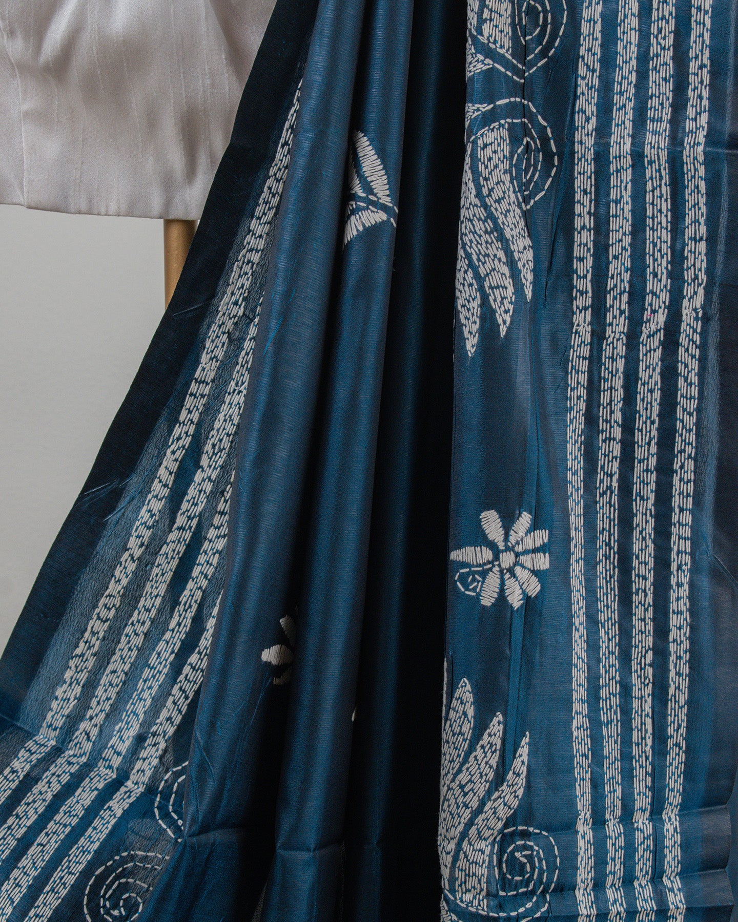 Made with care just for you, this saree mixes classic style with all-day comfort. Covered in delicate kantha hand embroidery, it’s a handwoven treasure you’ll adore wearing. Whether it’s a special event or a casual day out, this saree helps you shine bright and stand apart.