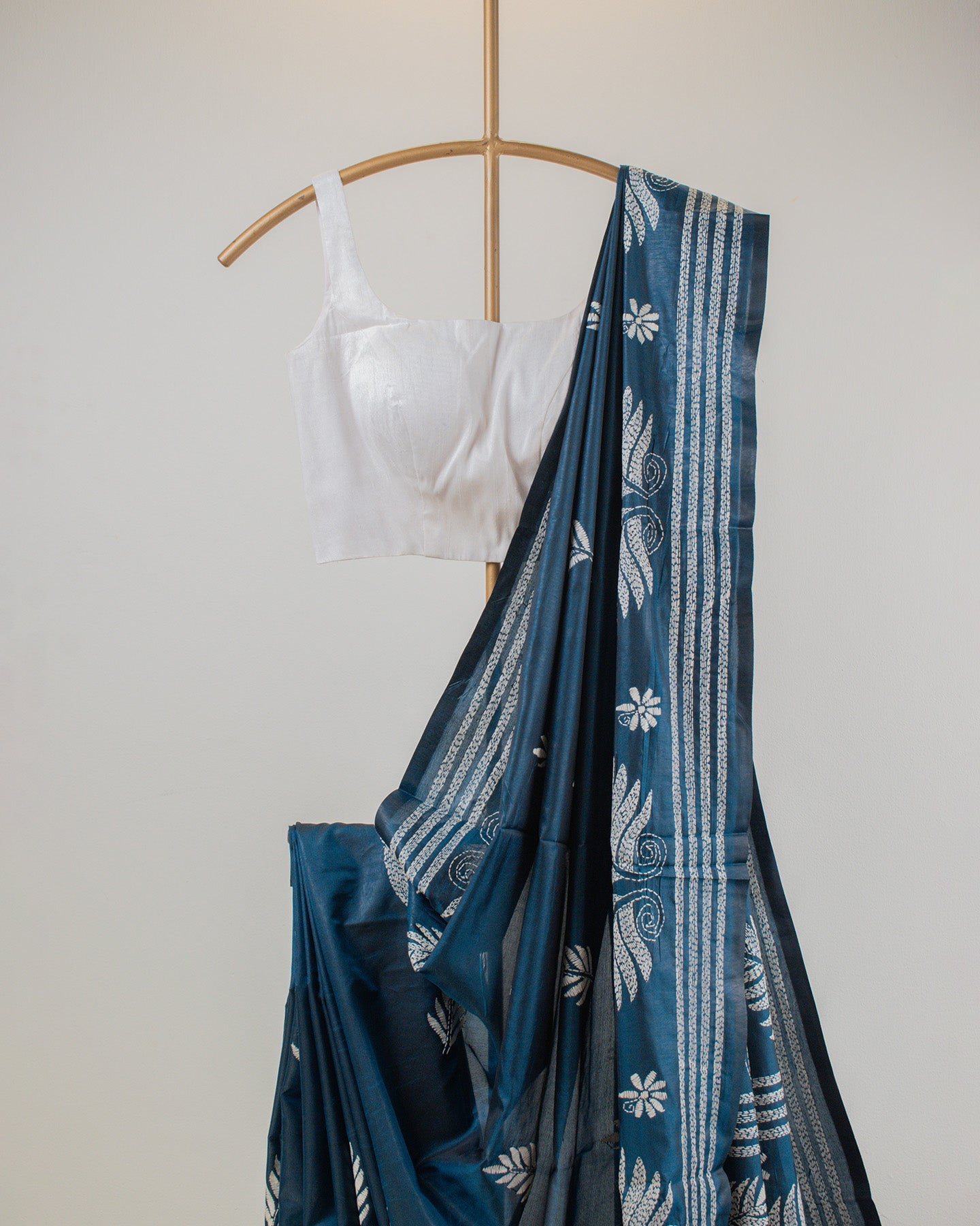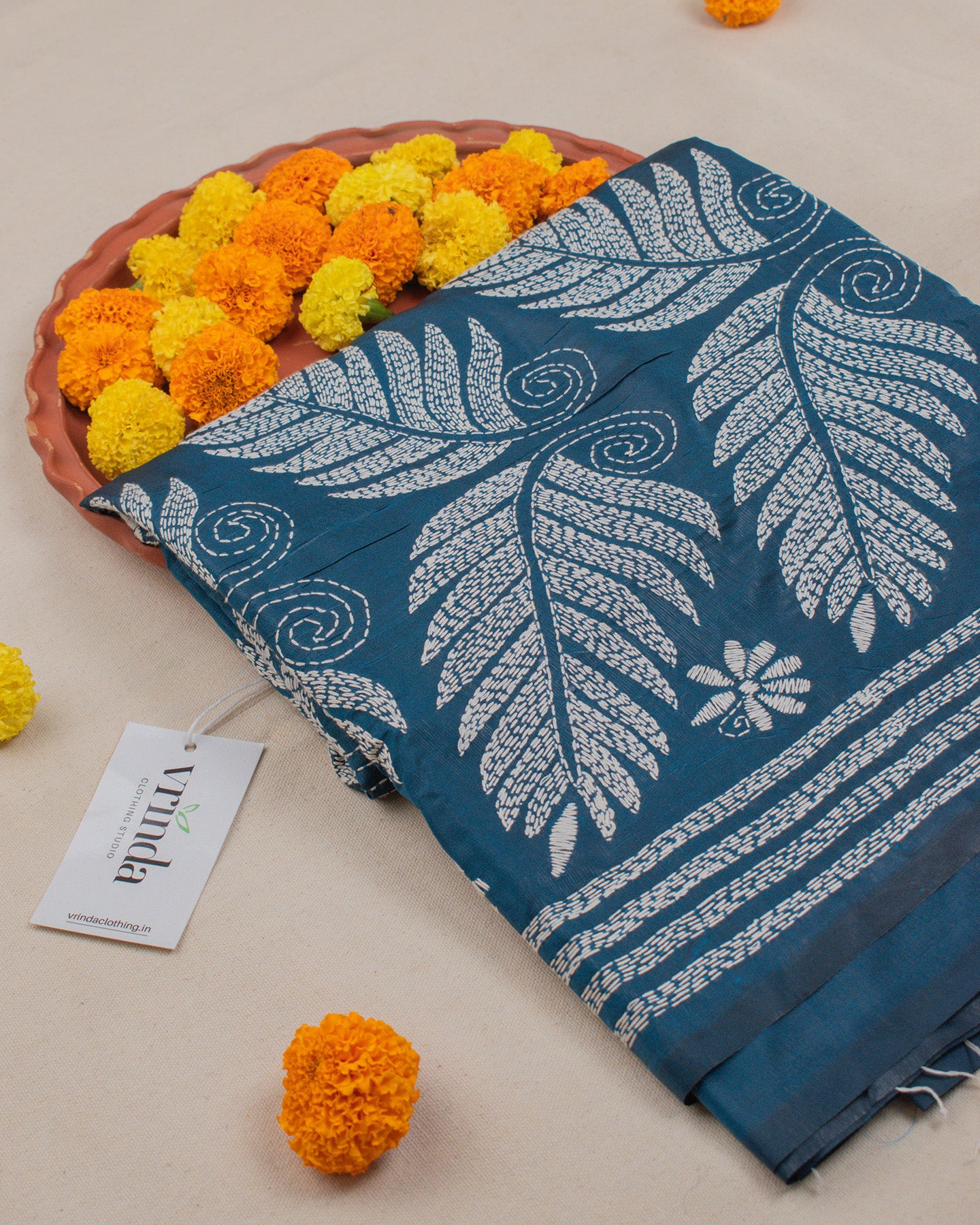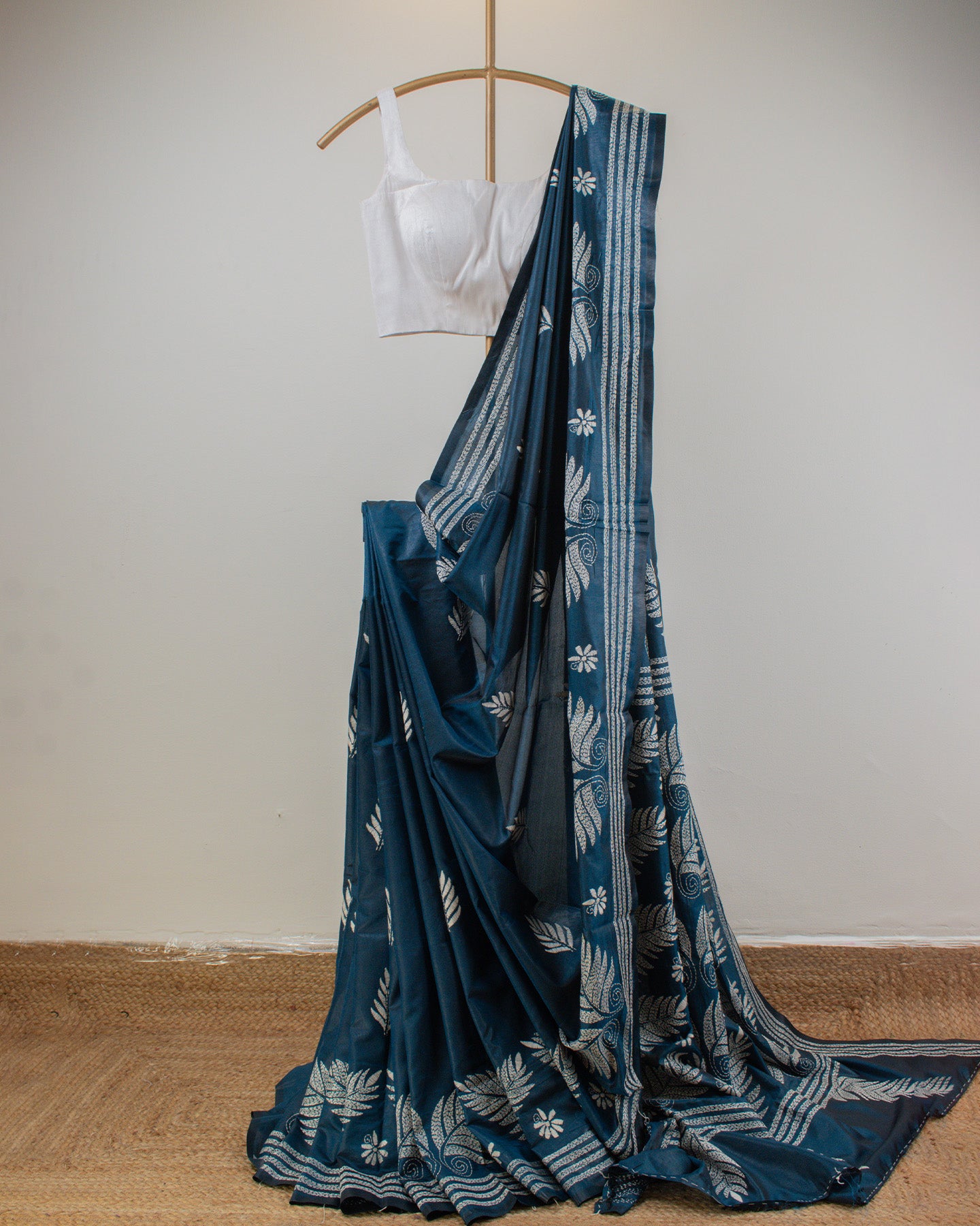 Made with care just for you, this saree mixes classic style with all-day comfort. Covered in delicate kantha hand embroidery, it’s a handwoven treasure you’ll adore wearing. Whether it’s a special event or a casual day out, this saree helps you shine bright and stand apart.
