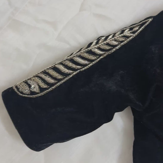 Prime your look with this soft velvet beauty. A versatile piece made in velvet with hand embroidery work for the best look and feel of elegance and Royal charm . This is a jacket or over coat style blouse which can be styled over anything sleeveless or strappy outfit.