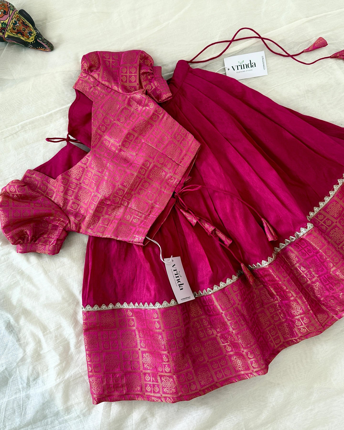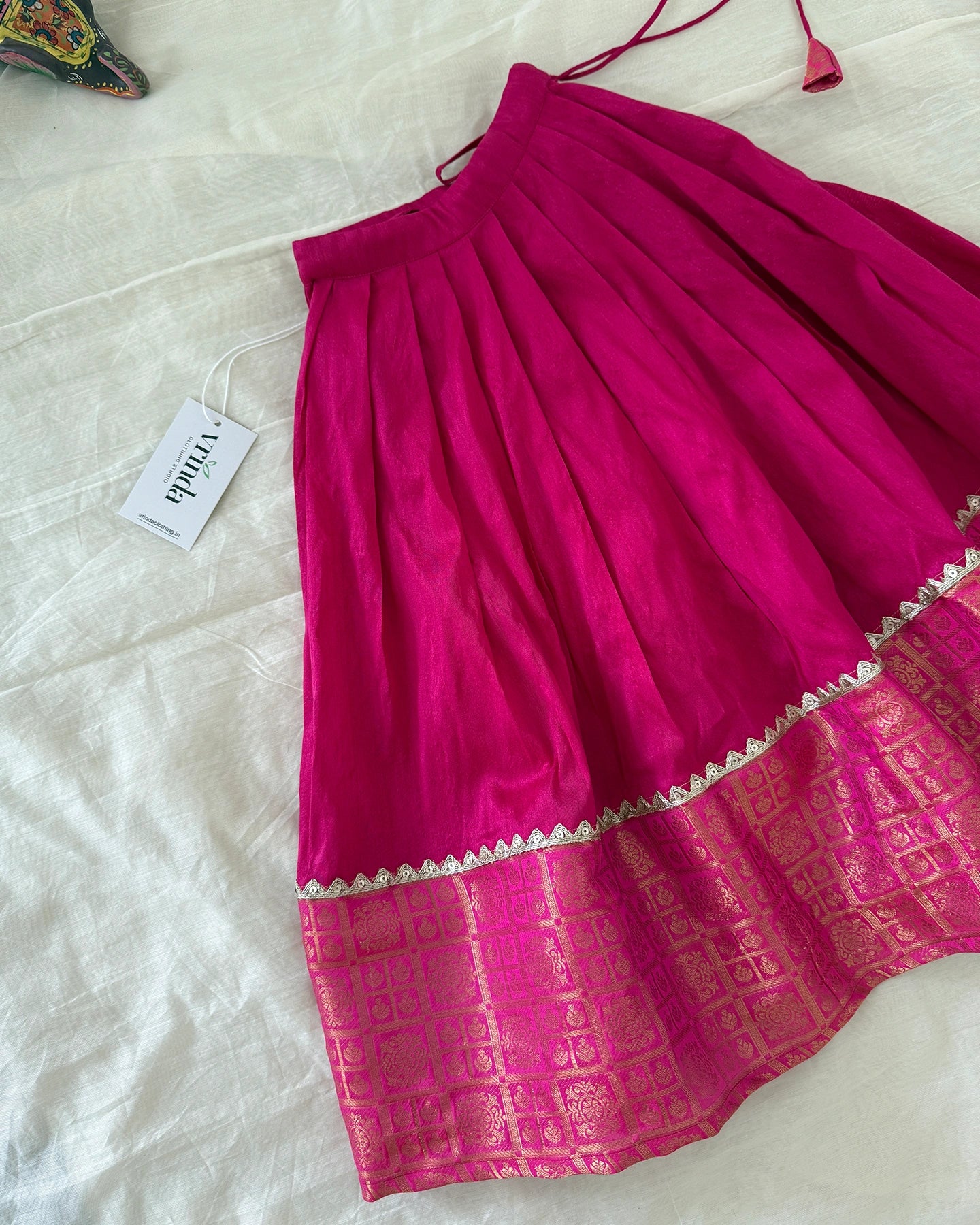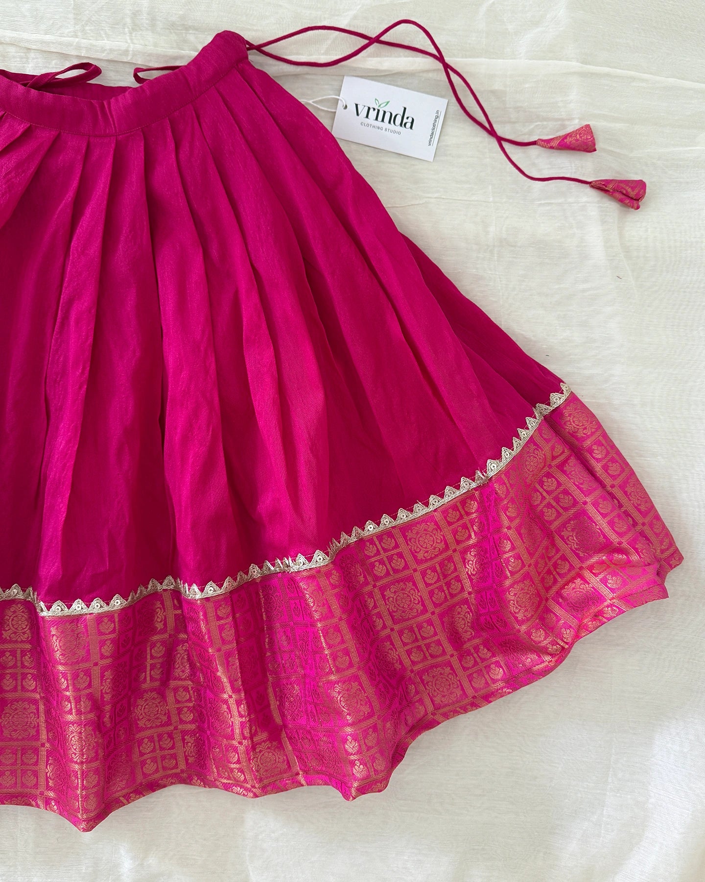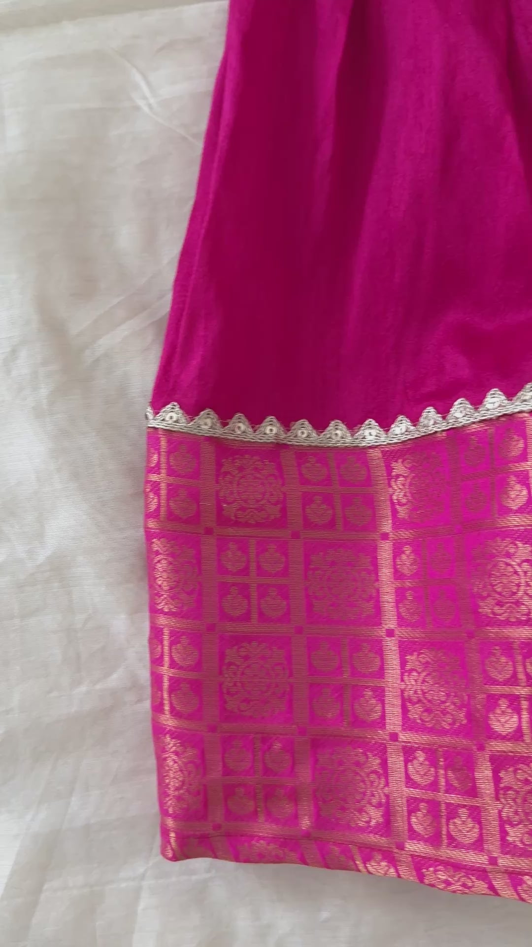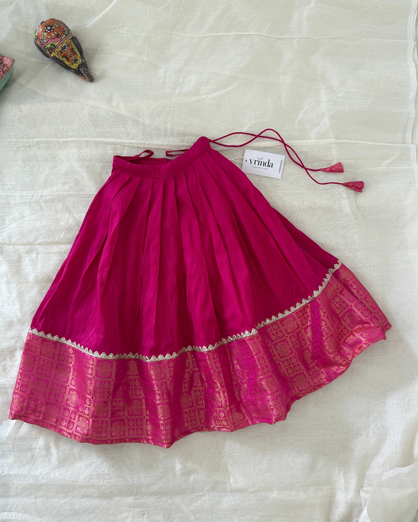 Let your little one shine bright in this beautifully crafted ethnic skirt, designed specially for celebrations. Pair it with a matching blouse or kurti to complete the festive charm!