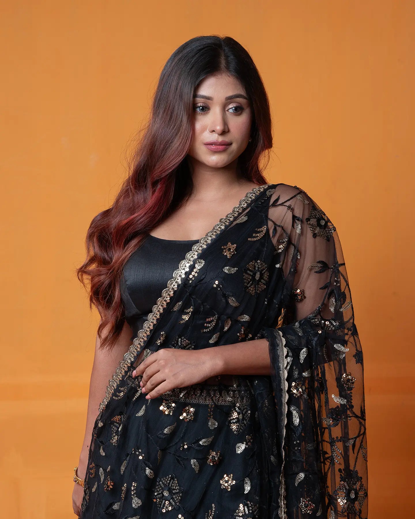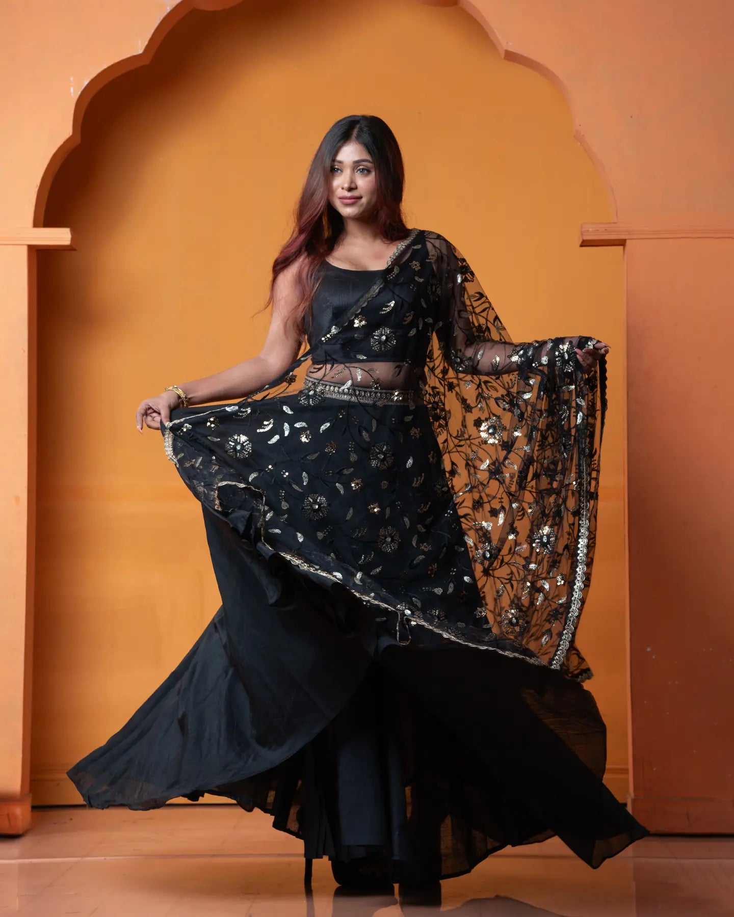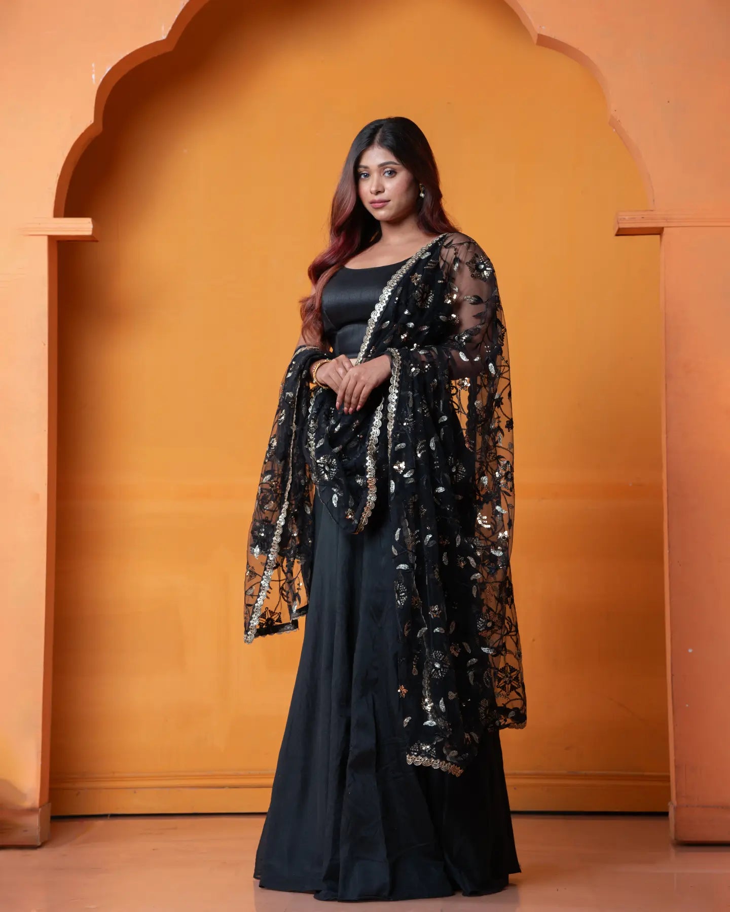 Timeless Classic for being effortlessly traditional in a glamorous shade black to create an elegant and comfortable ethnic style for your special occasions .
