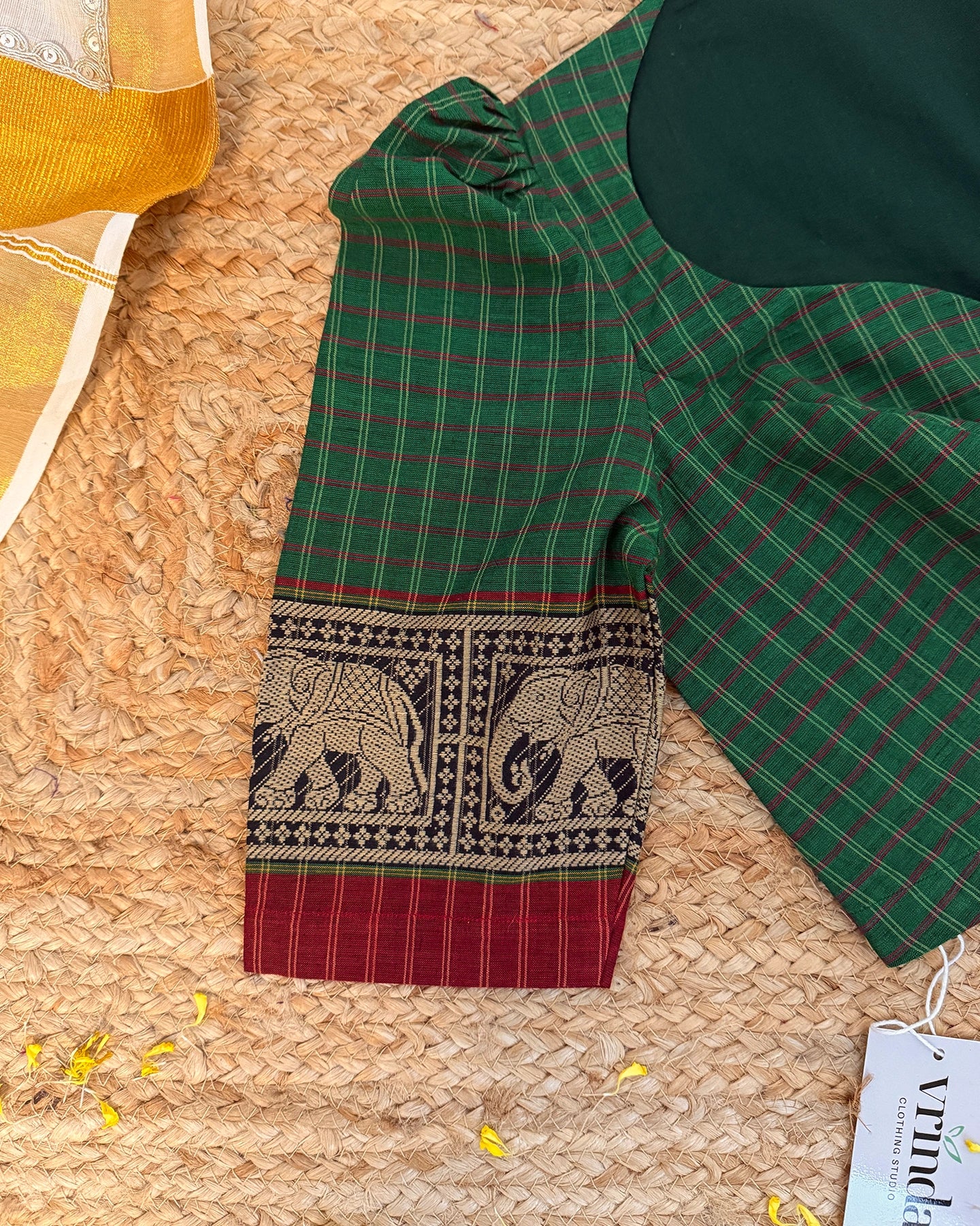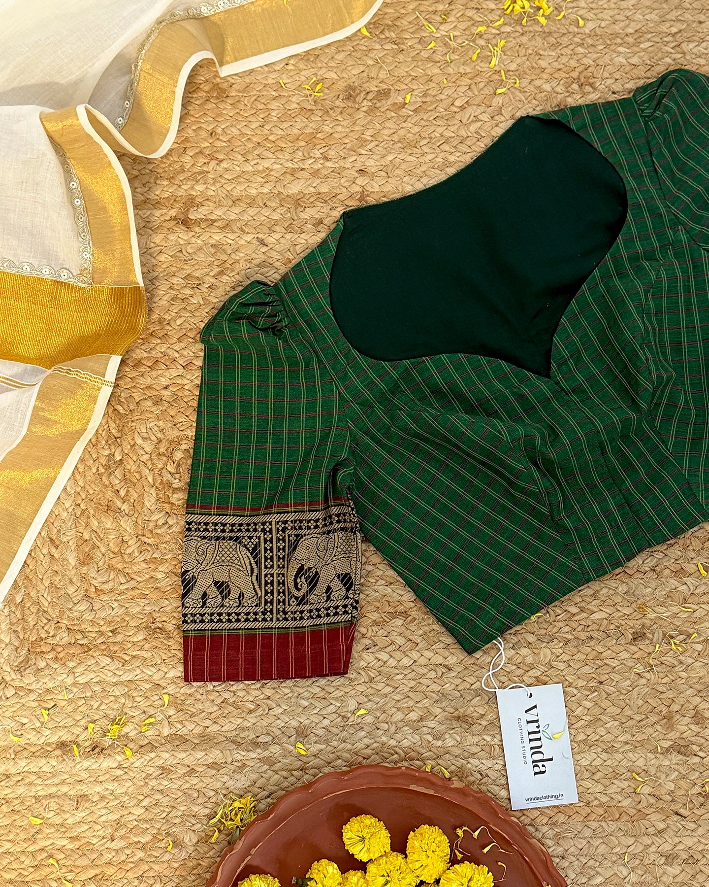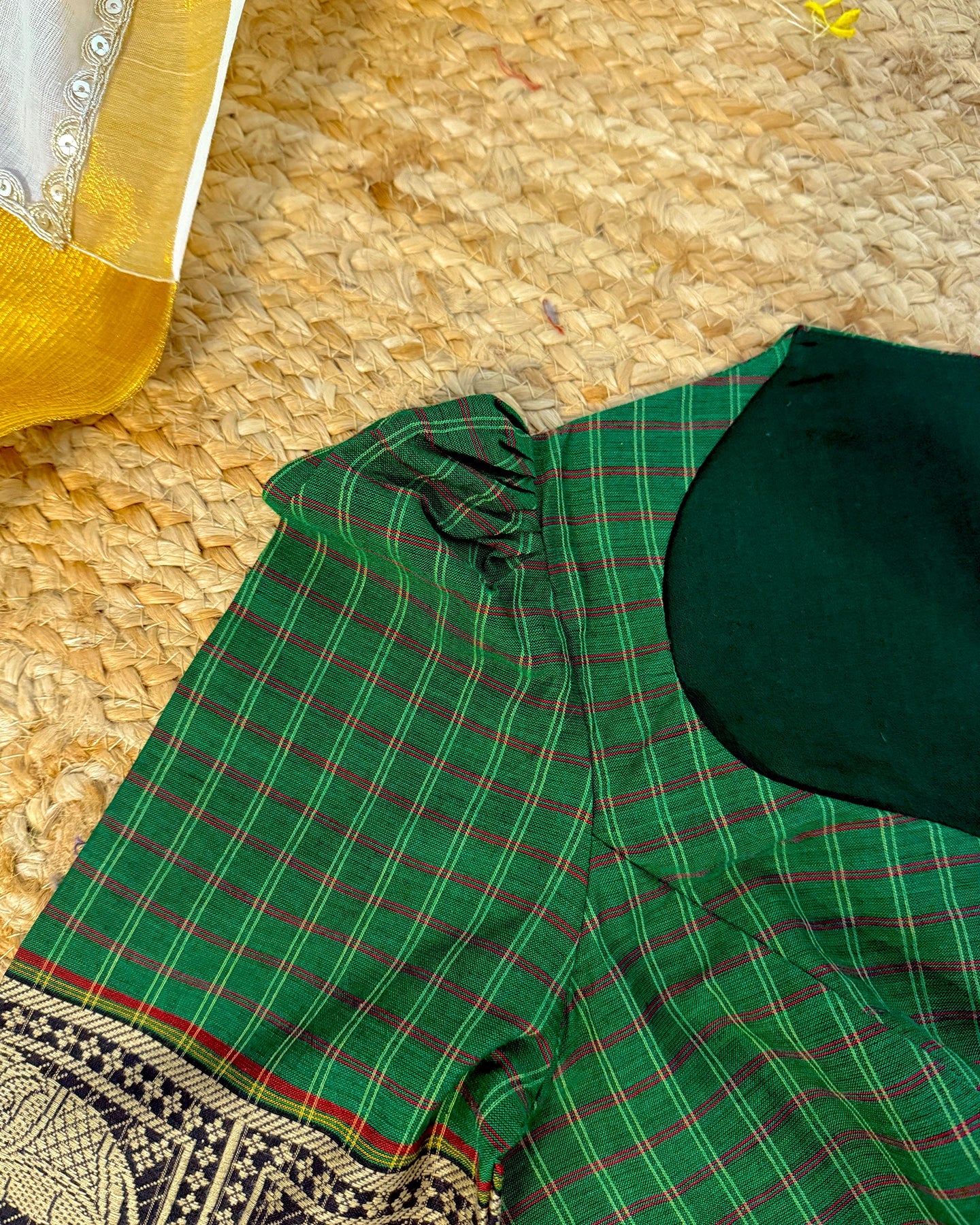 A classic everyday wear blouse , made out of Madurai Pure cotton with woven checks, with pure cotton lining inside