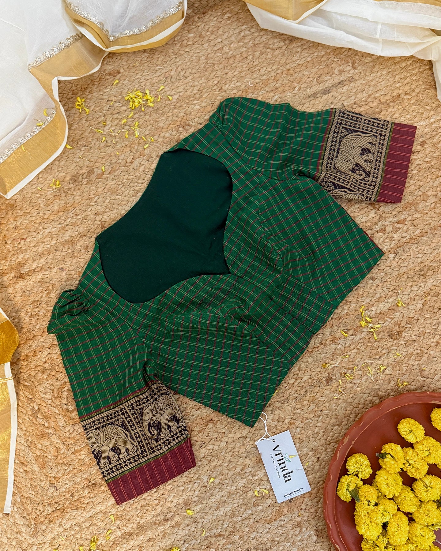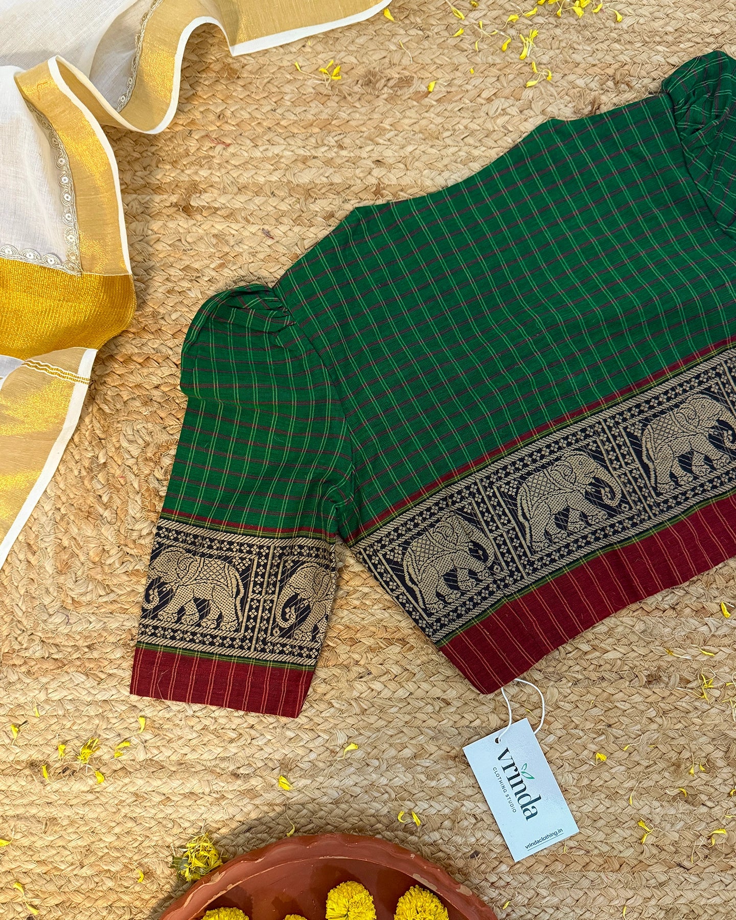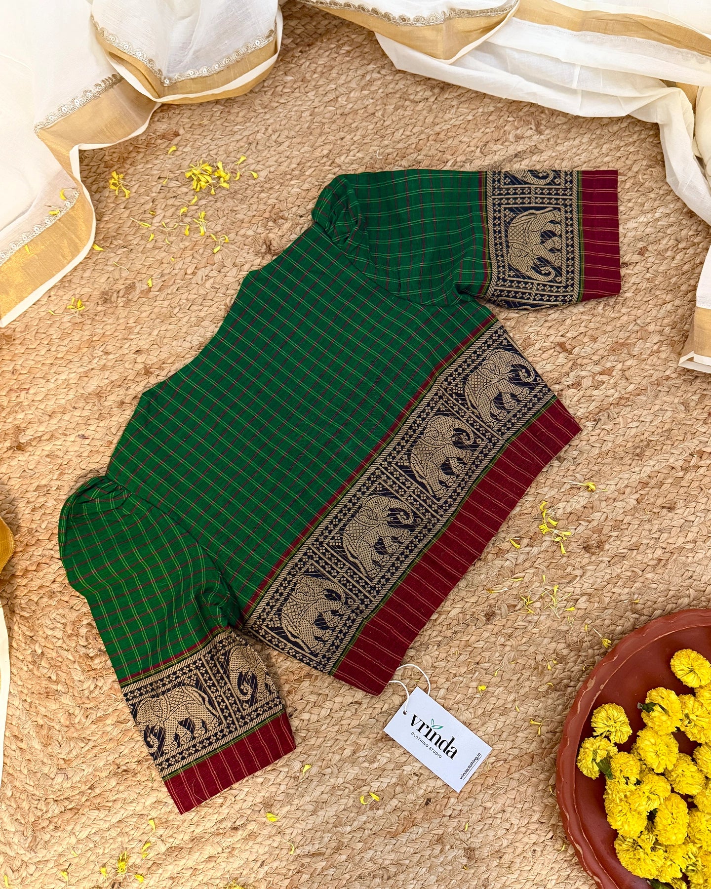 A classic everyday wear blouse , made out of Madurai Pure cotton with woven checks, with pure cotton lining inside