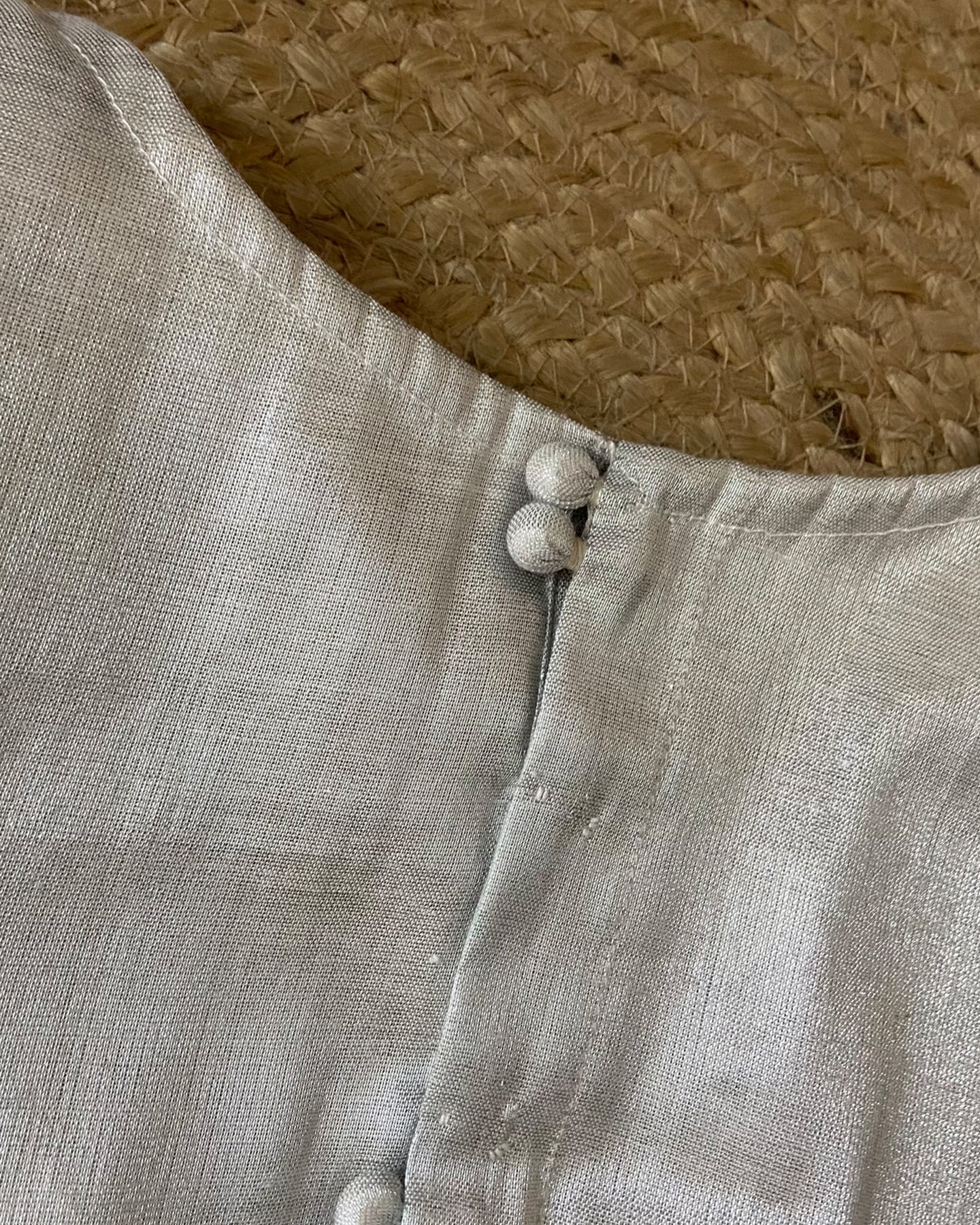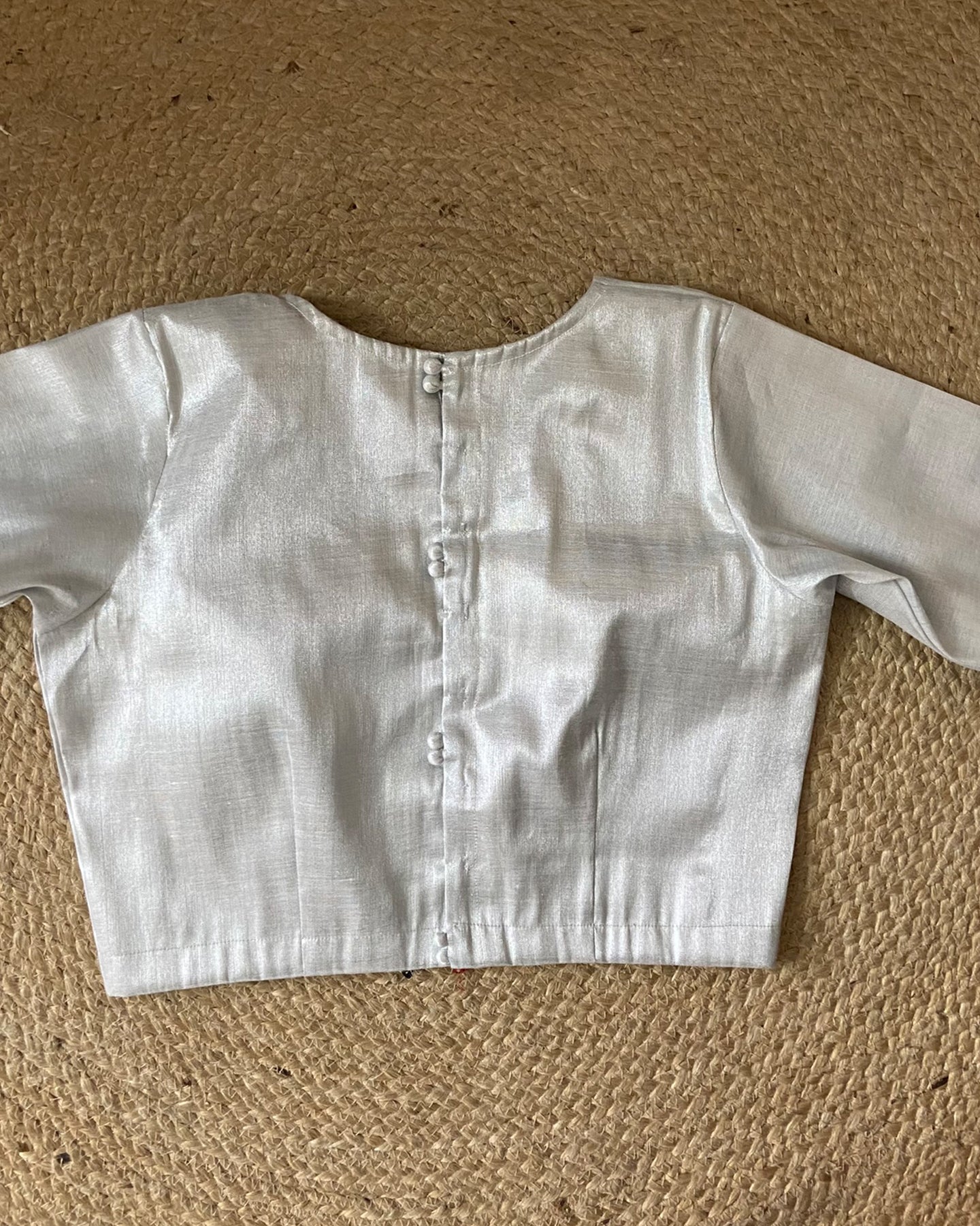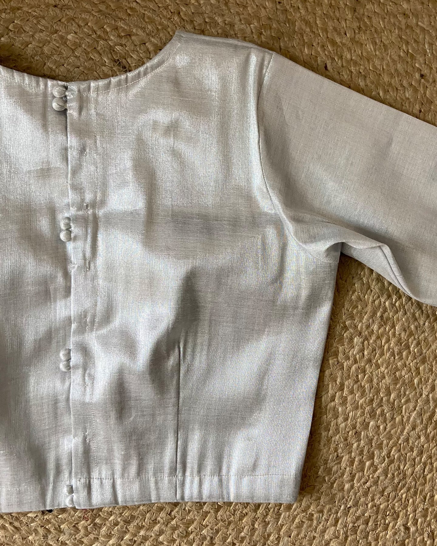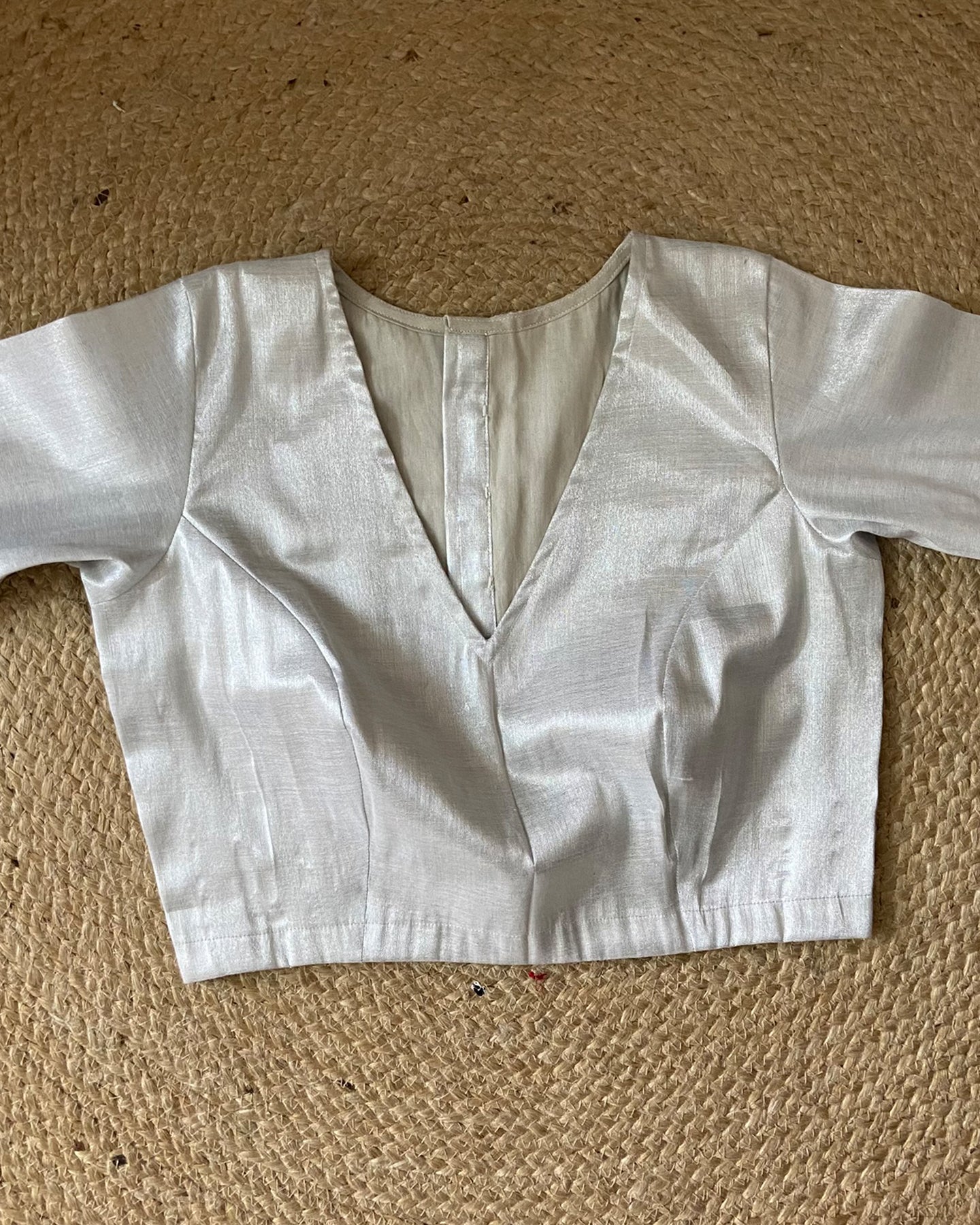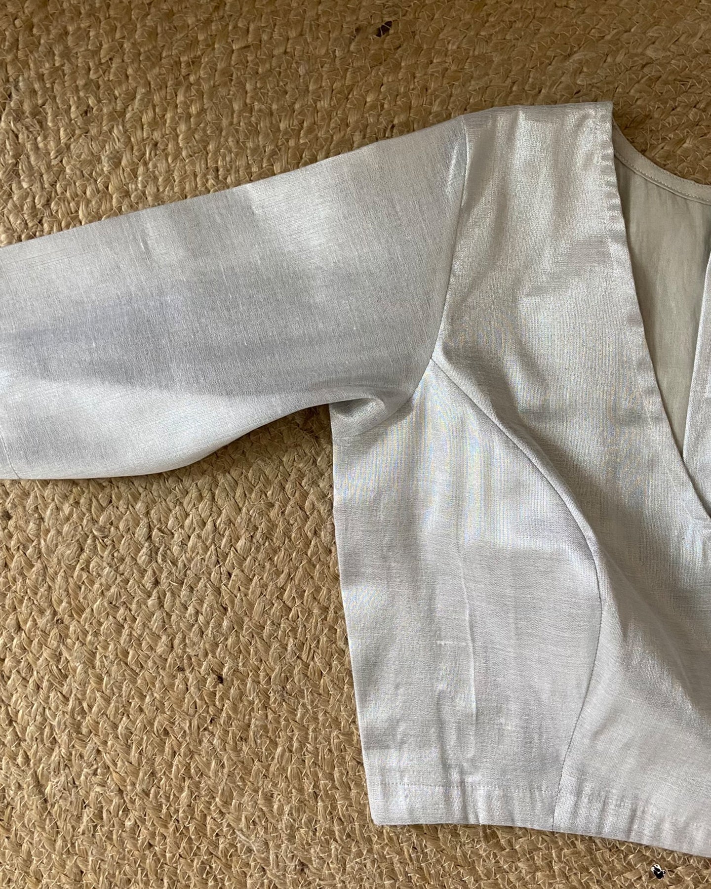 Simple yet sober silver blouse that we keep looking around to add on to our collection of basic blouses. The unstructured style and large pairing options make it easy to style the blouse that can be worn casually or on special occasions.