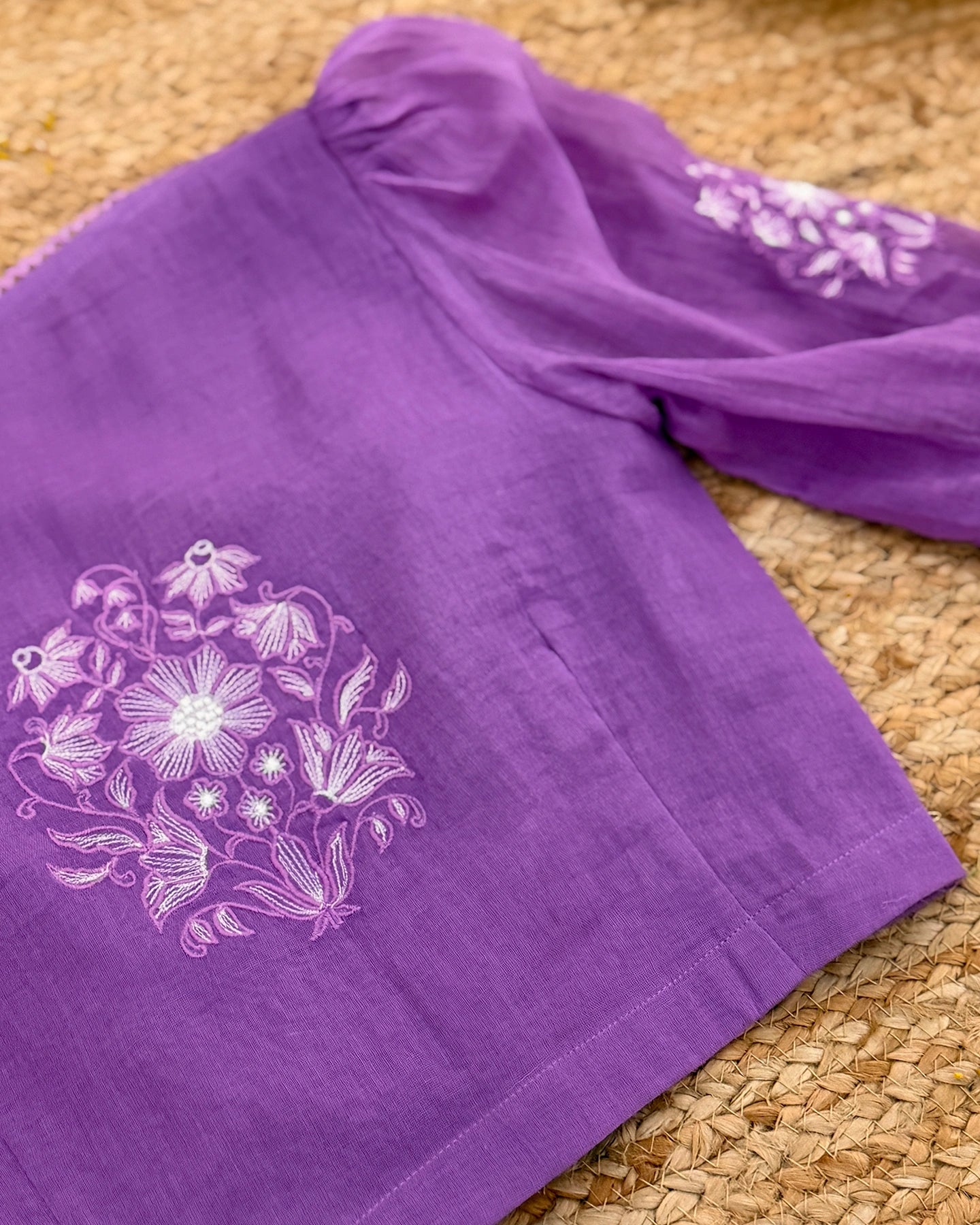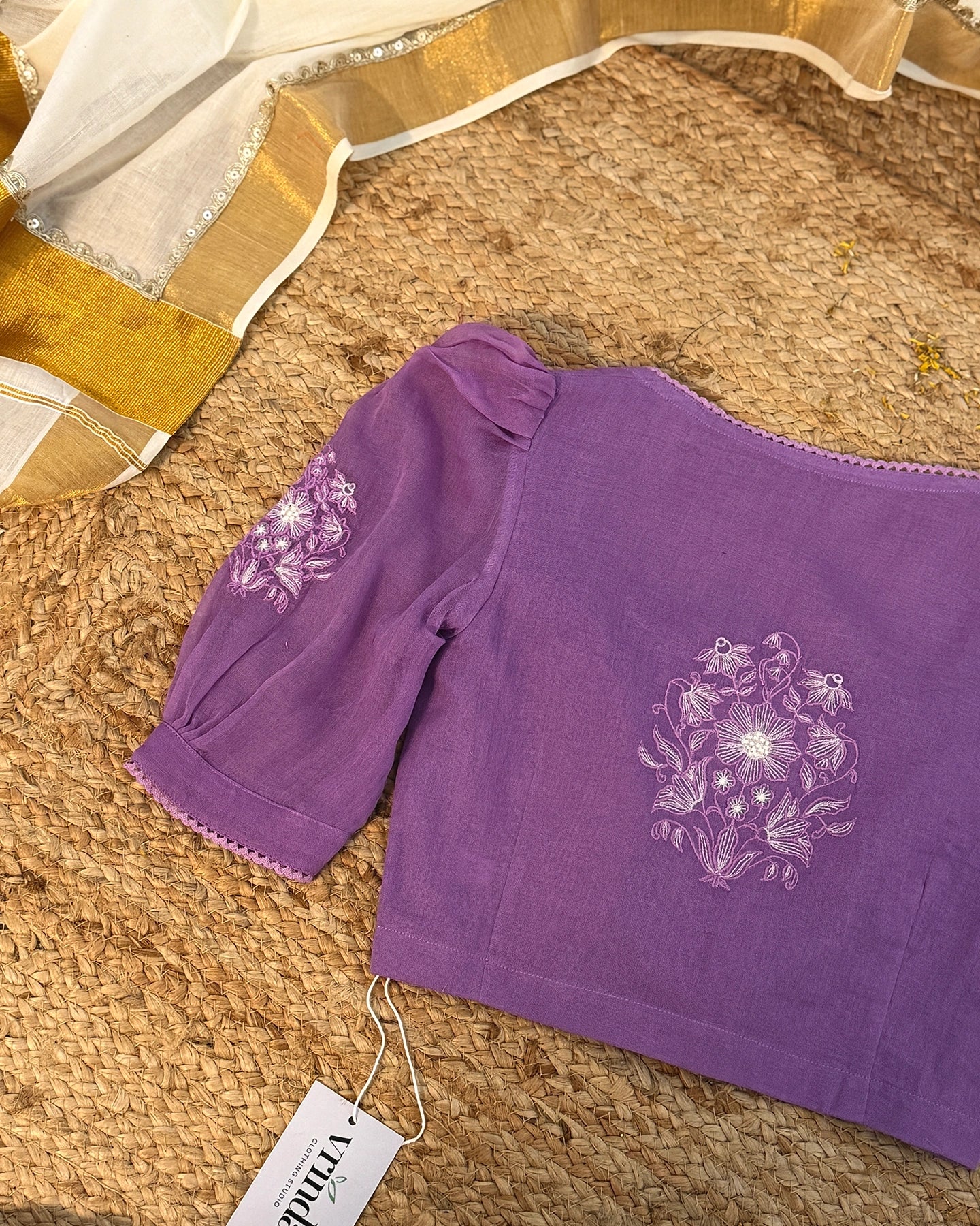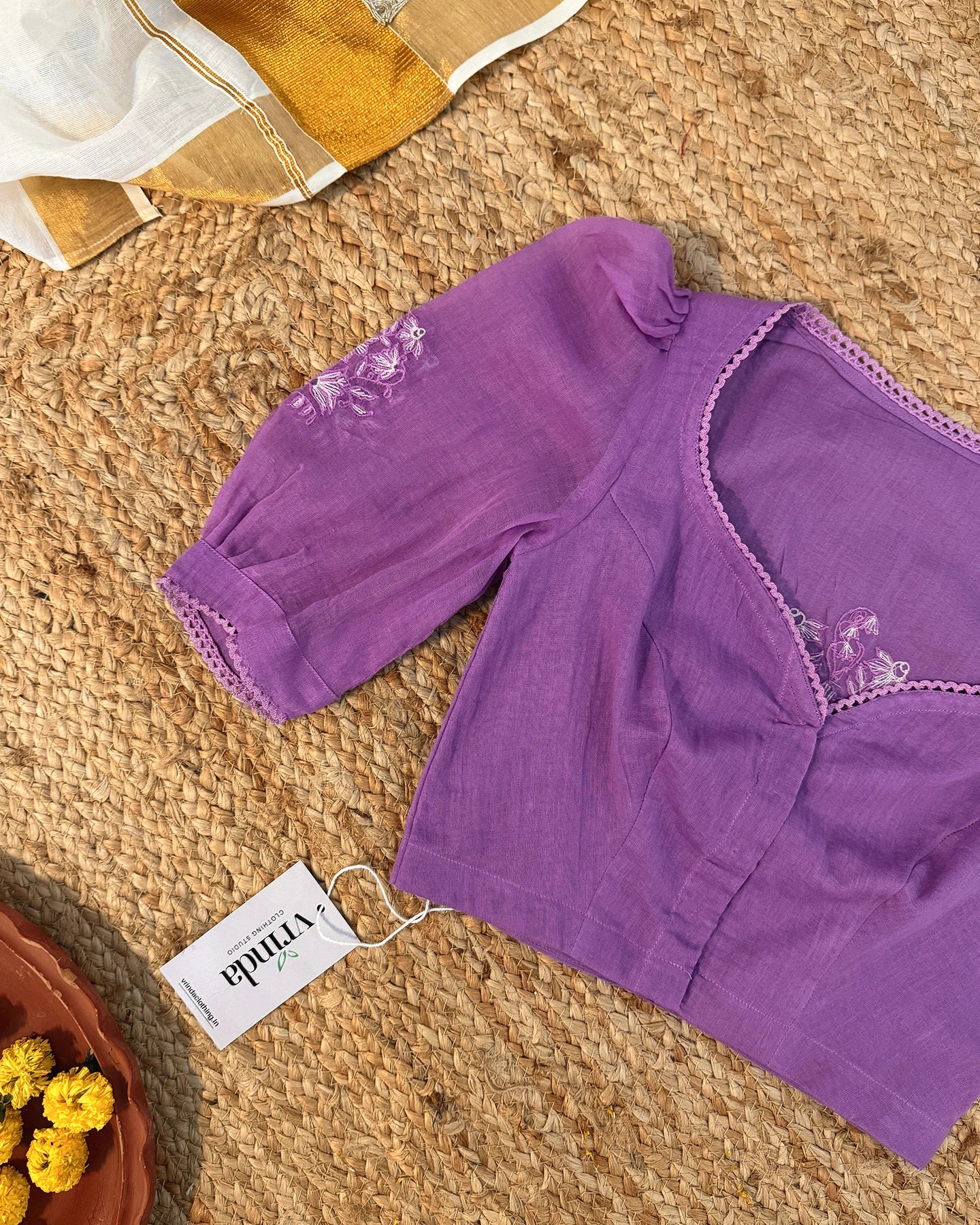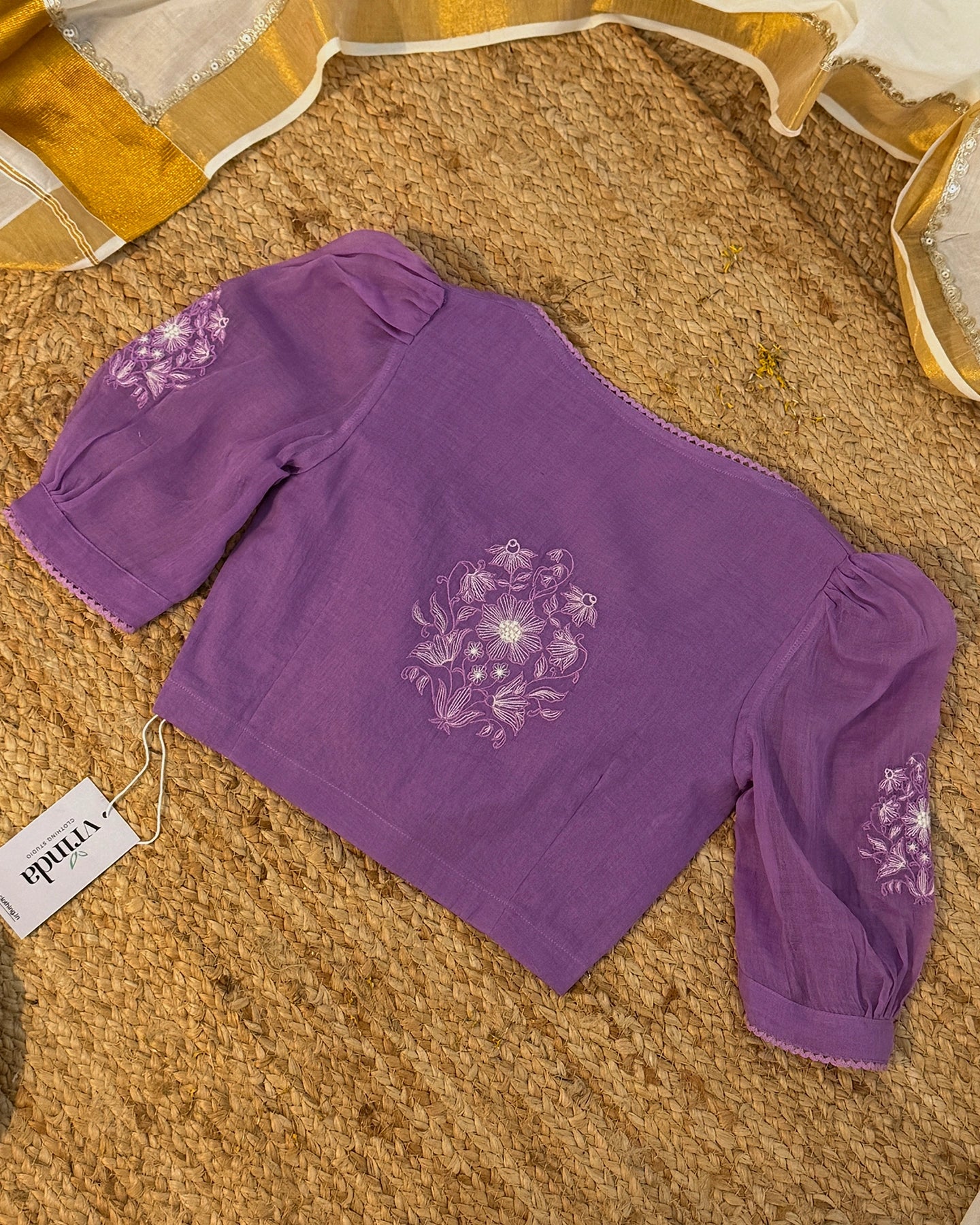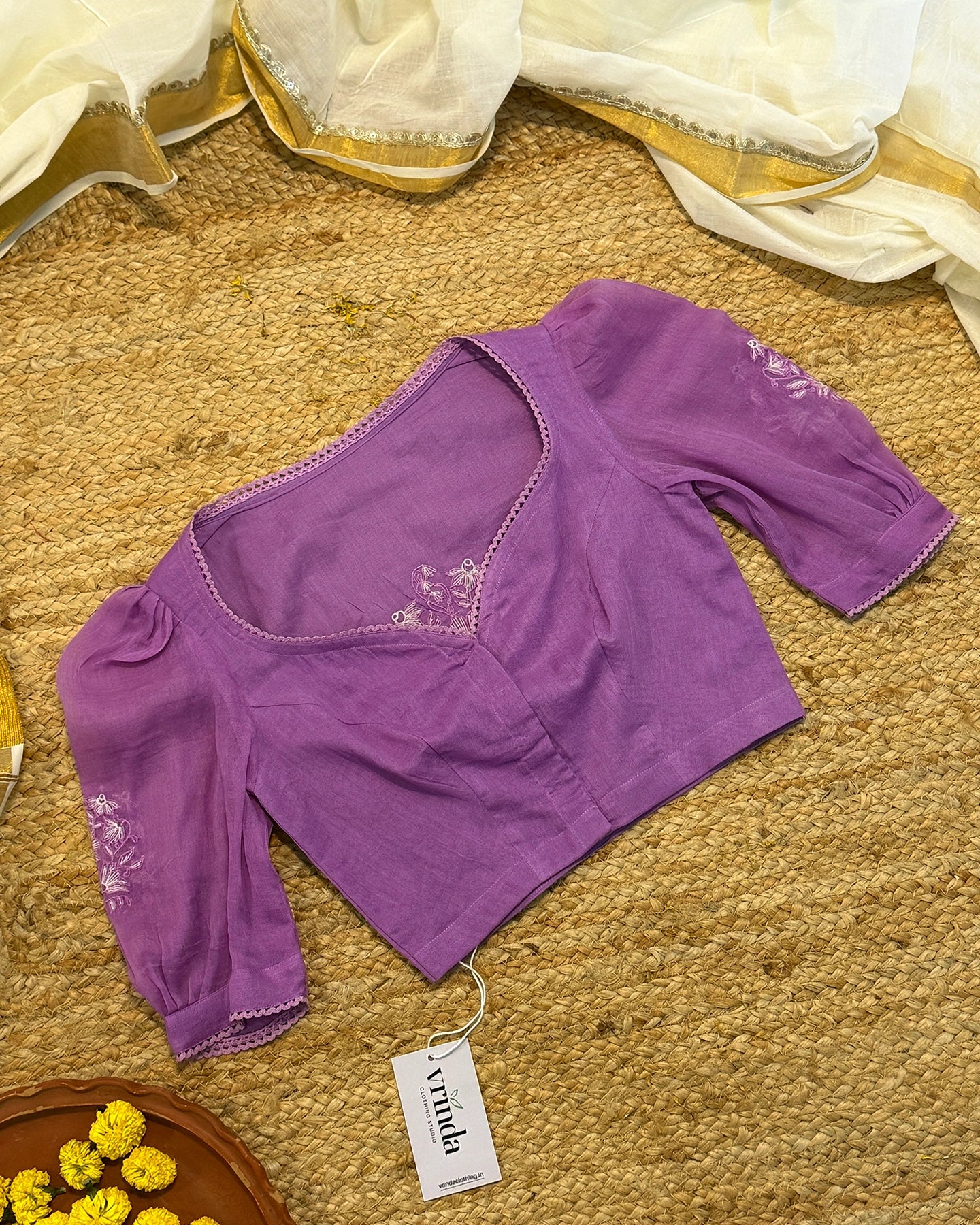 Mesmerisingly beautiful mulmul blouse with embroidery work , adorned with minimal lace edging for the perfect classic vintage look! It has pure cotton lining all over inside.